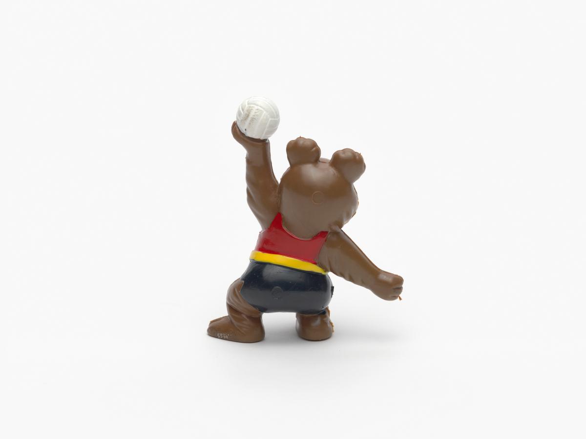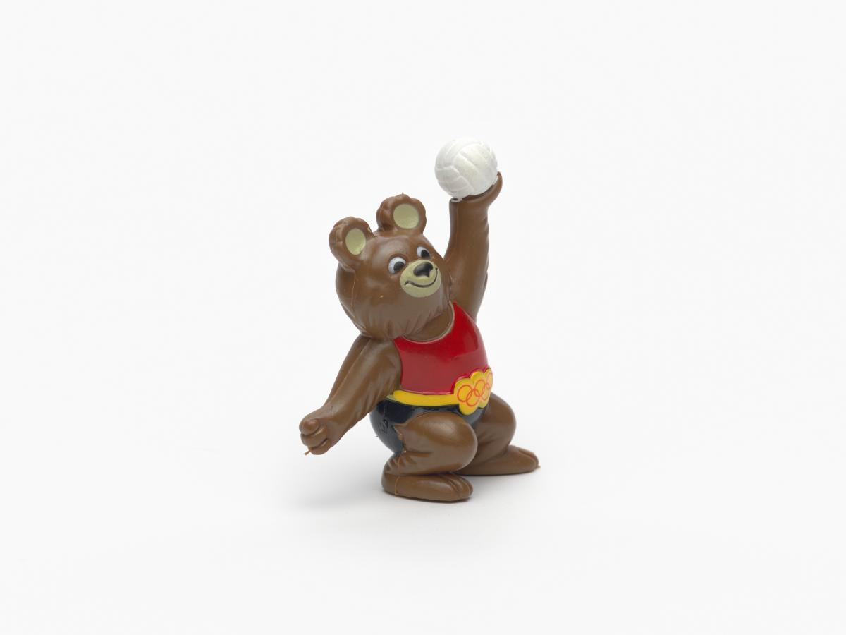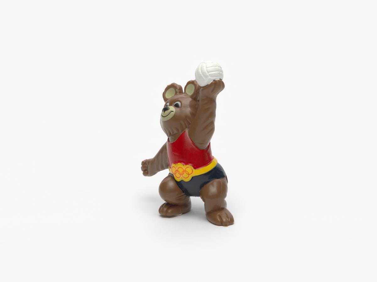 Moscow 1980, figurine of Misha, the Games' mascot, playing volleyball.