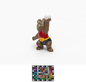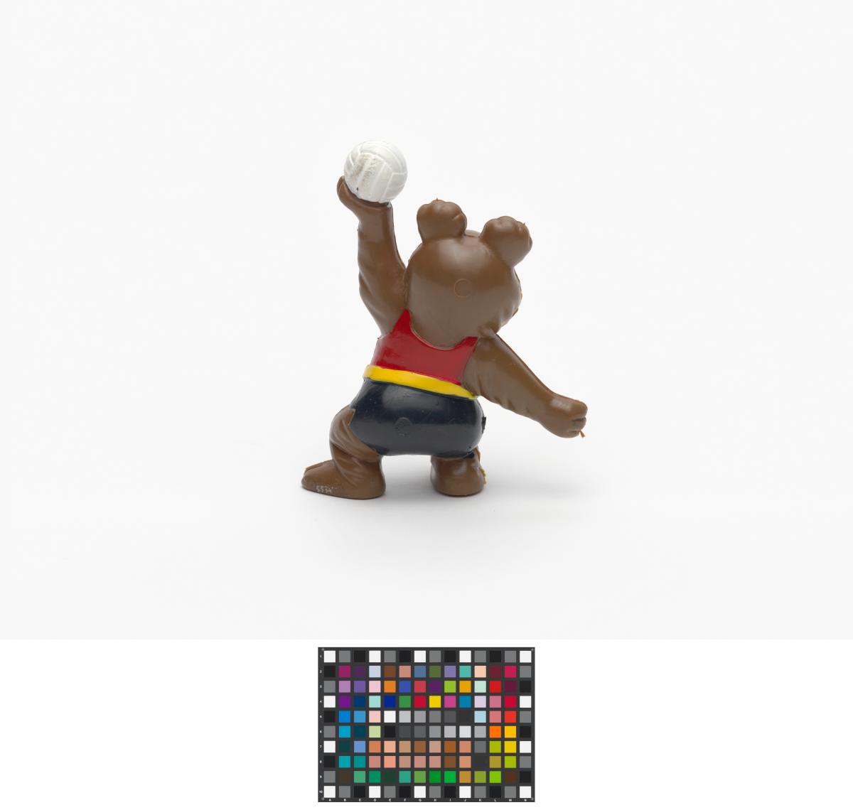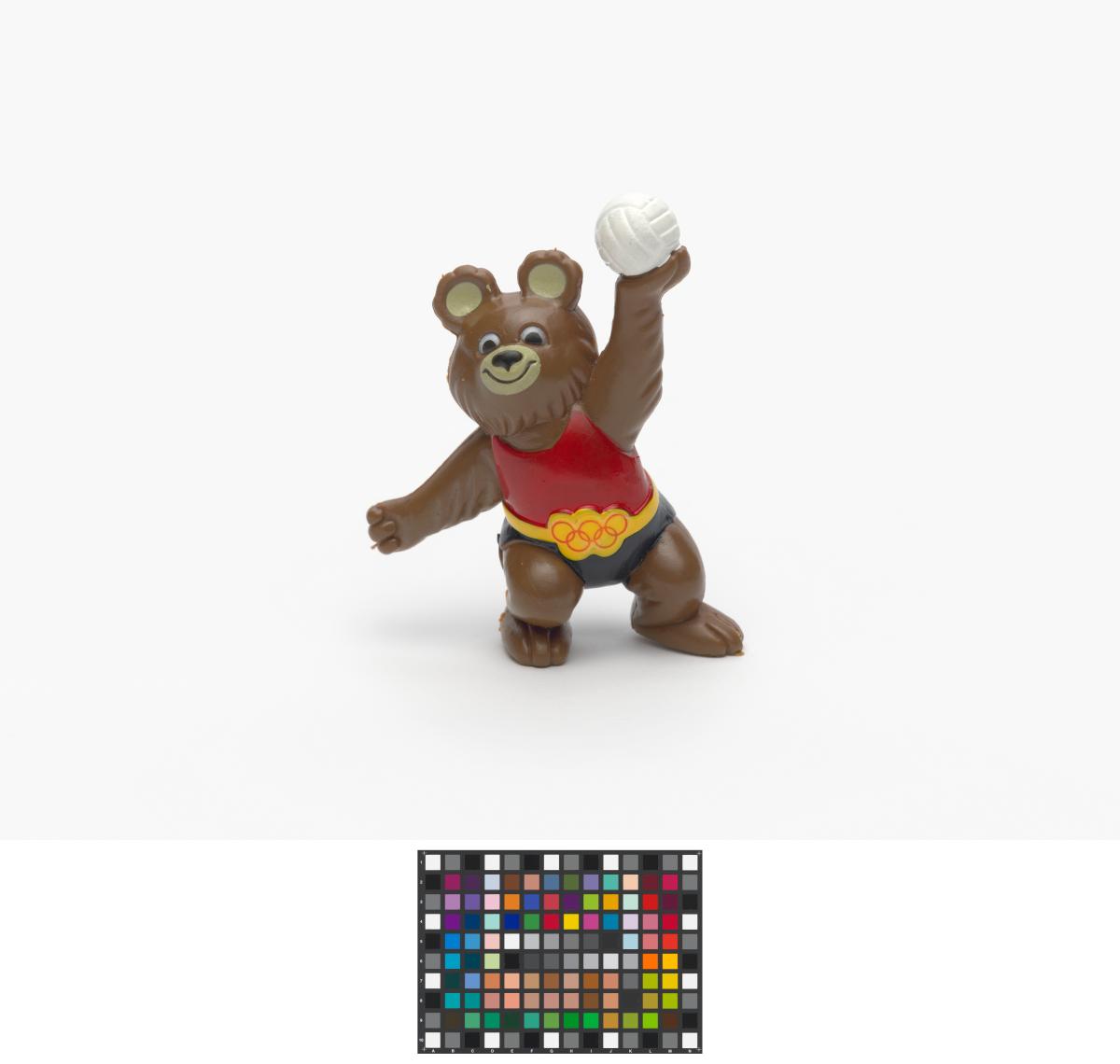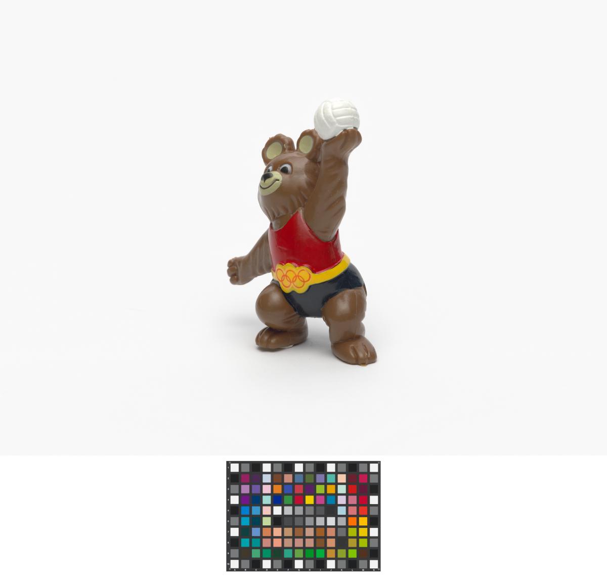 Moscow 1980, figurine of Misha, the Games' mascot, playing volleyball.
