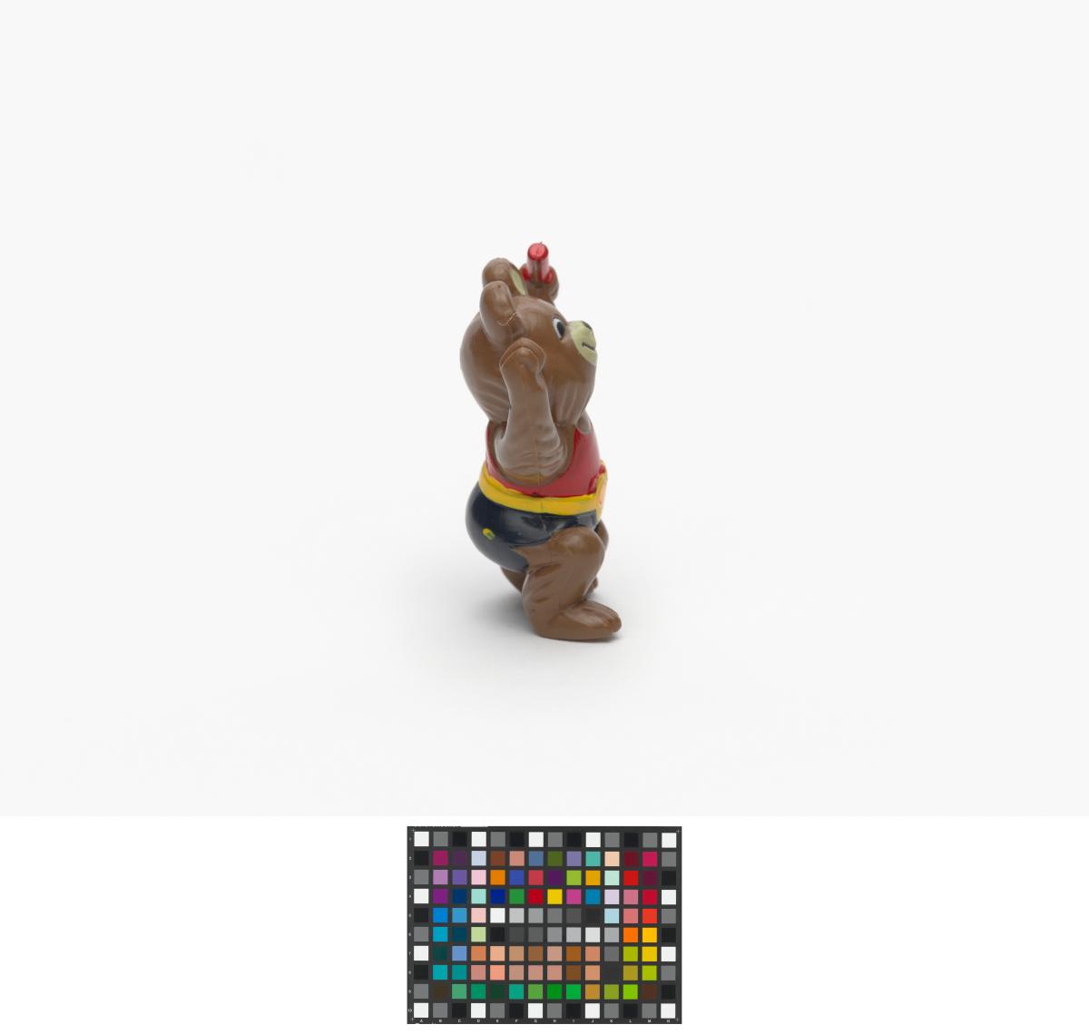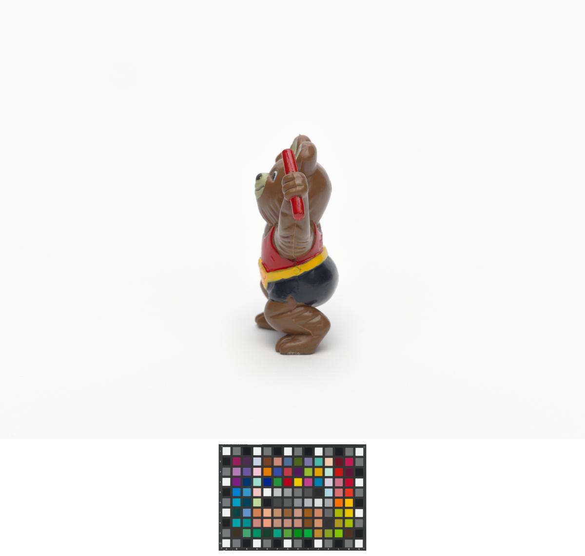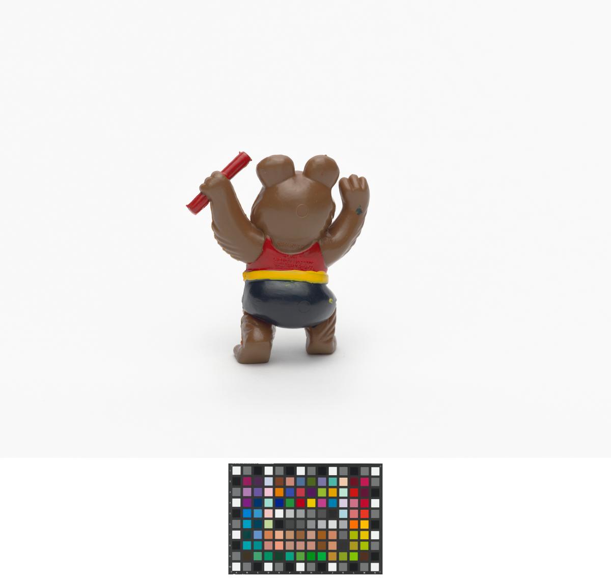 Moscow 1980, figurine of Misha, the Games' mascot, holding a relay baton.