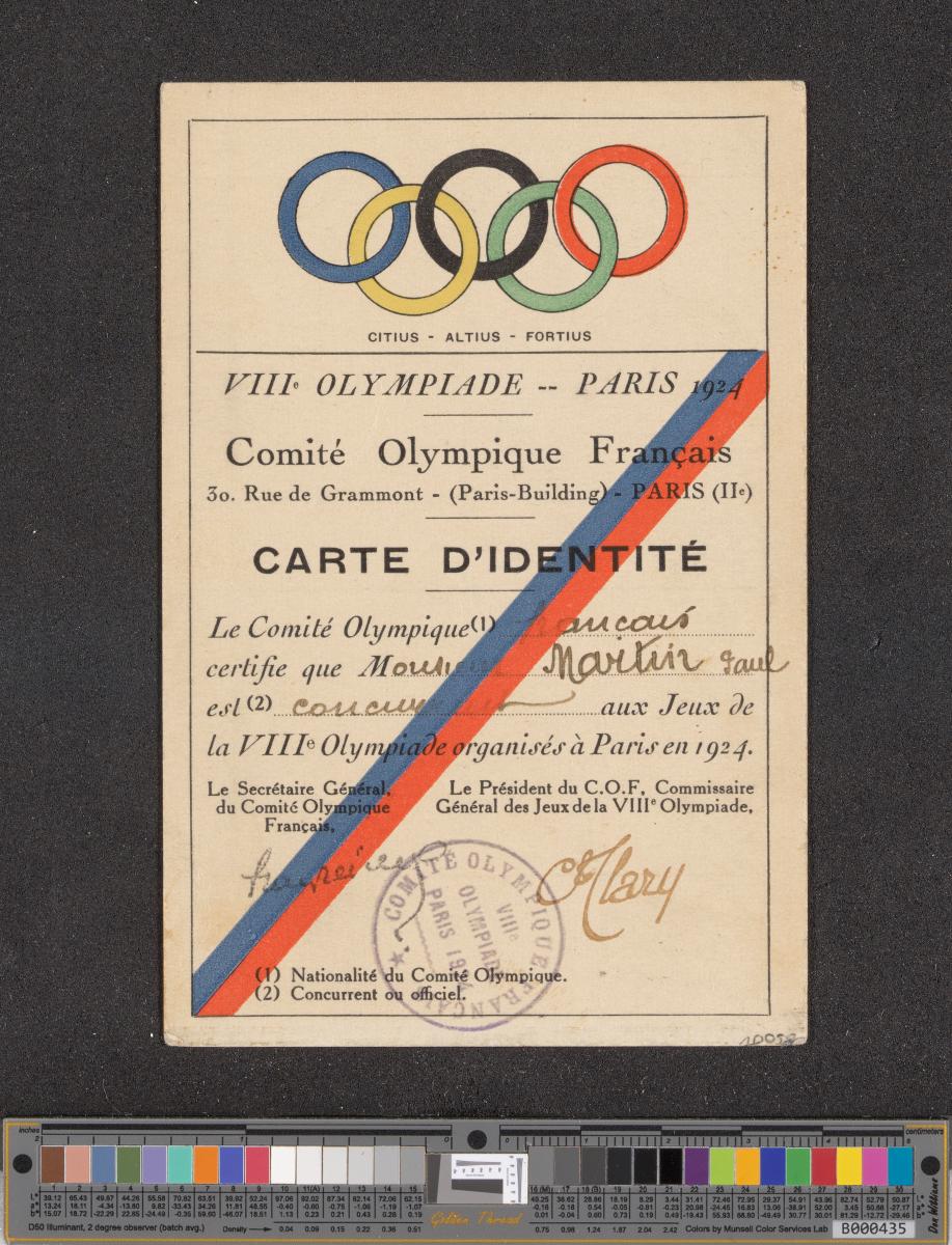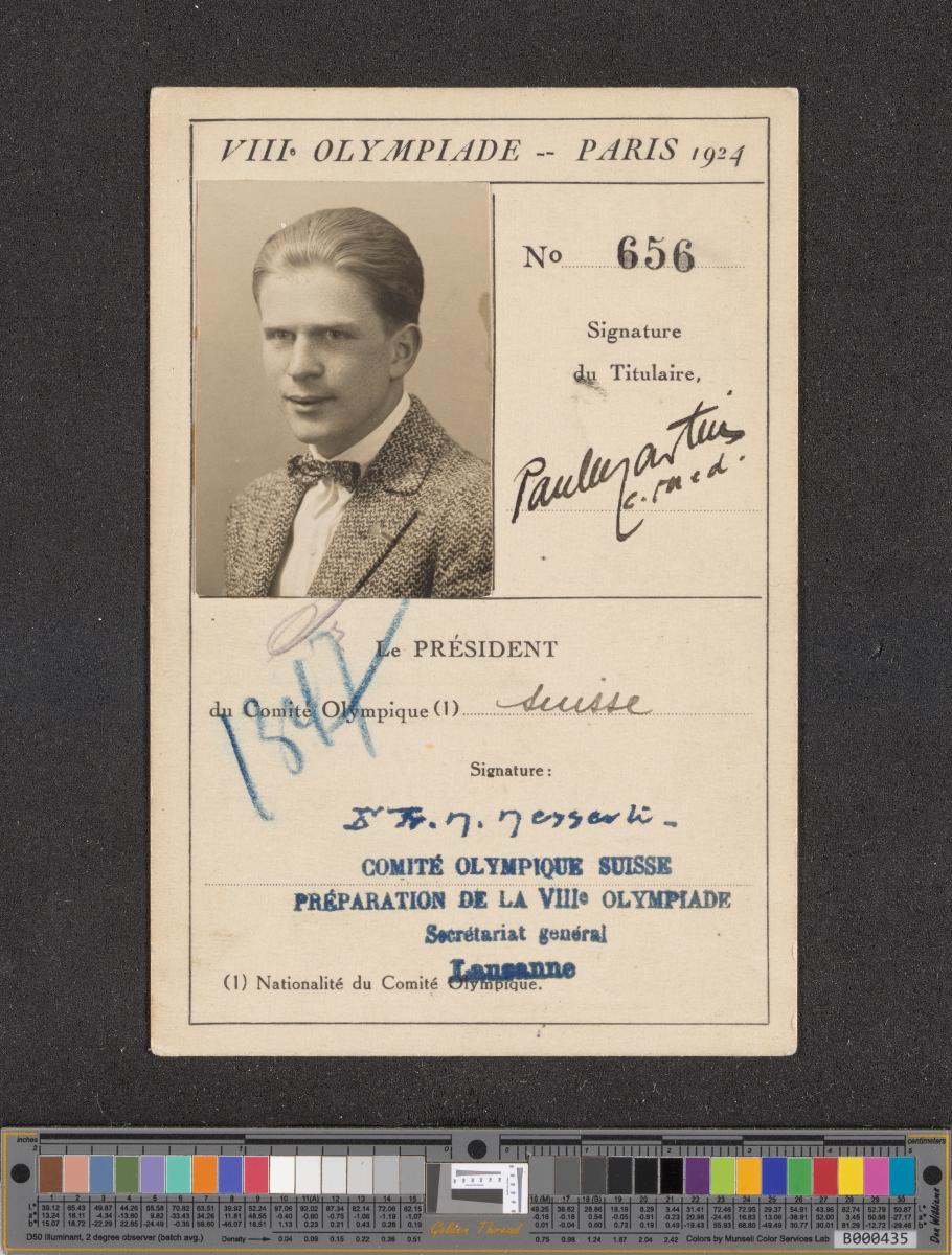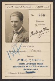 Paris 1924, identity card of the athlete Paul MARTIN (SUI).