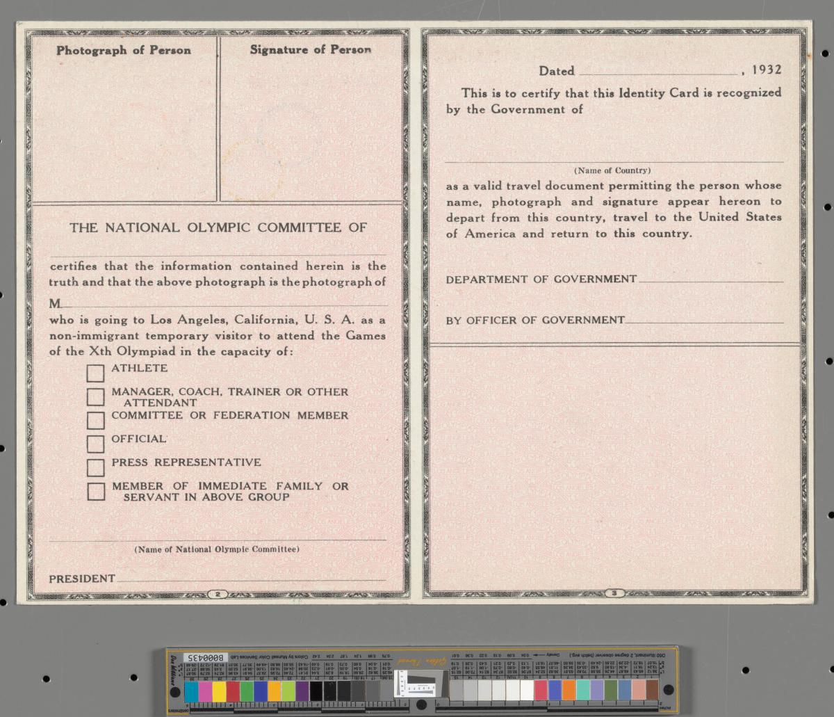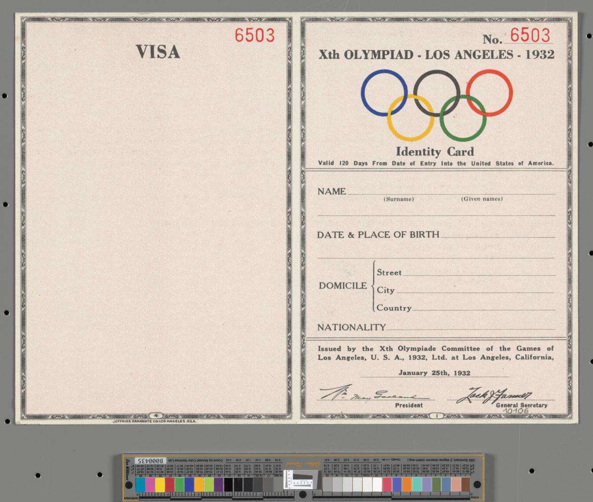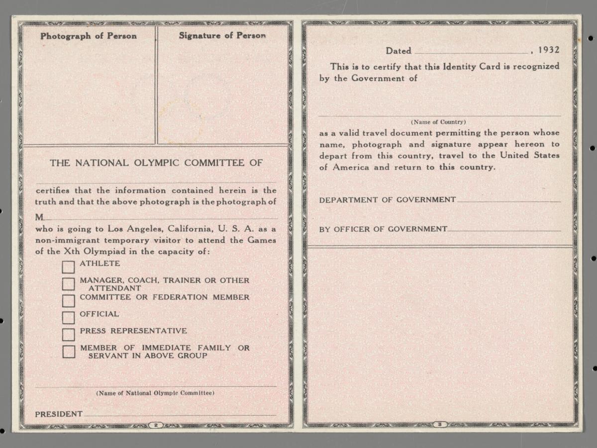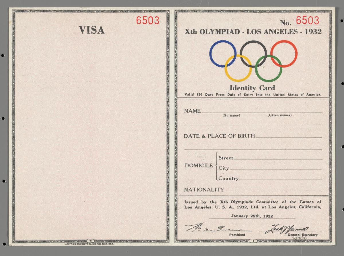 Los Angeles 1932, identity card of the concurrents or the officials used as passport.