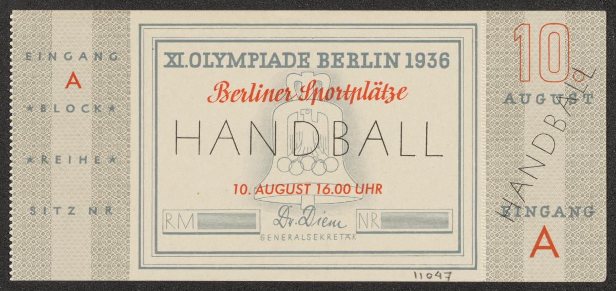Berlin 1936, admittance ticket August 10th for handball, finals.