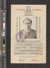 Text in German "Olympia Ausweis". Picture, signature and address.