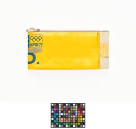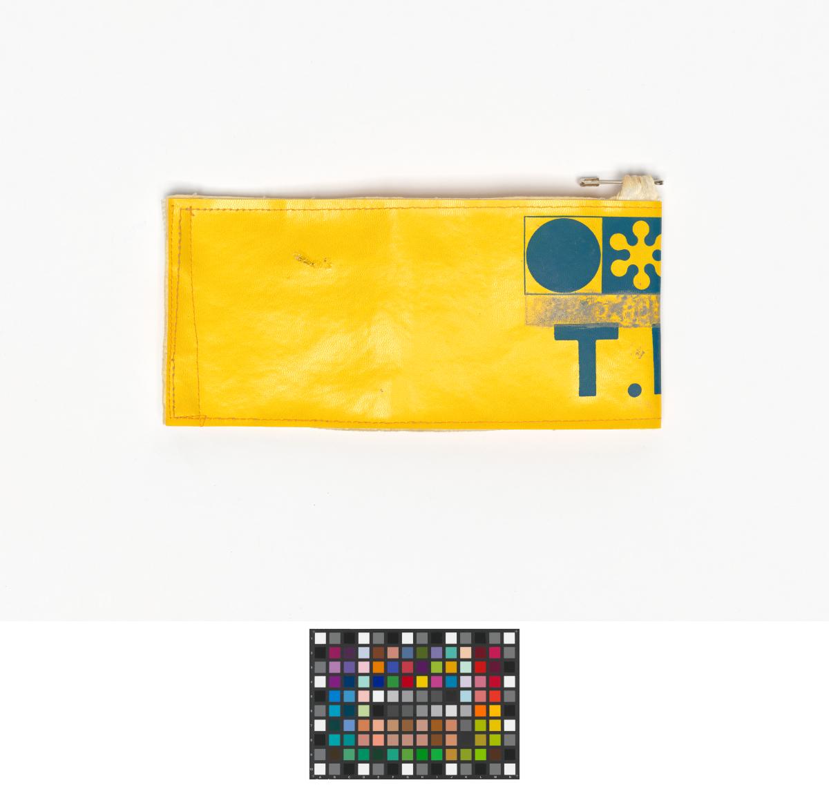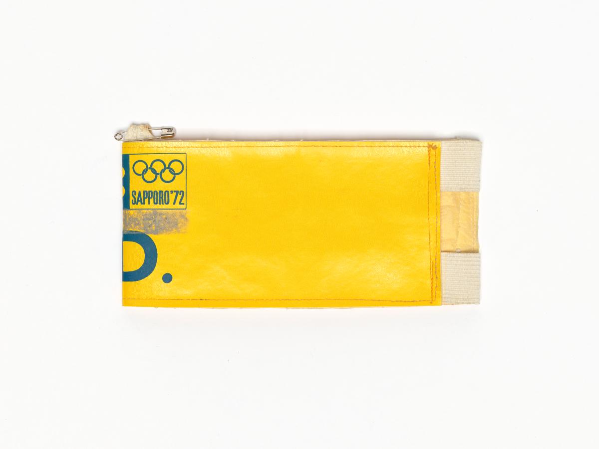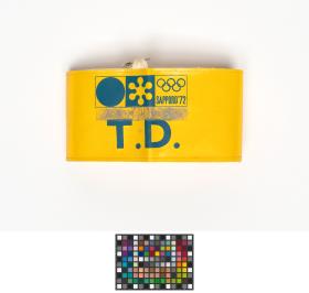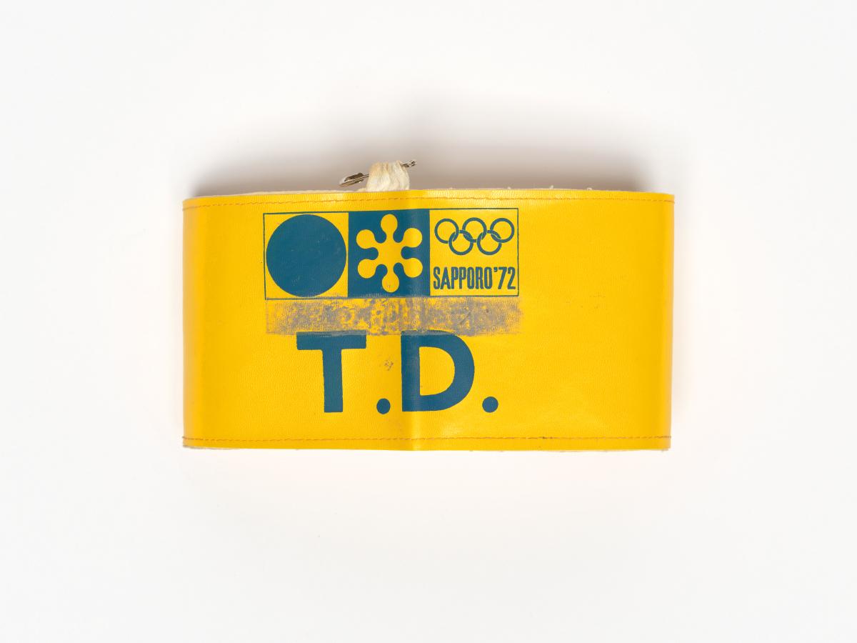 Yellow armband with the Games' emblem. Caption: "Sapporo 1972 / T.D". Safety pin.