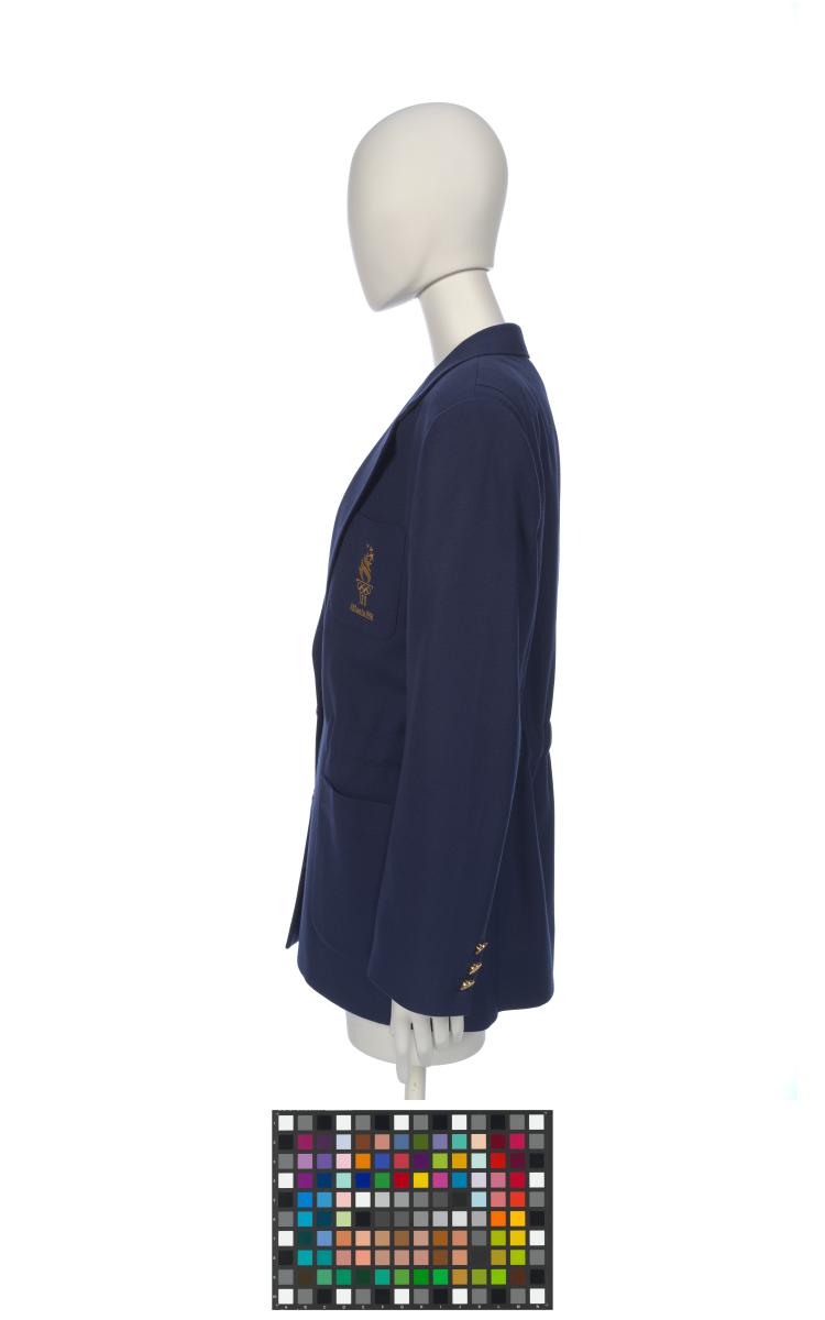The Games' emblem is embroidered on the breast pocket. All the buttons have the Games' emblem as well.