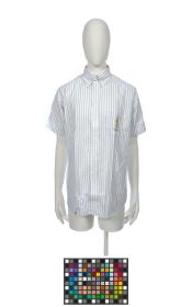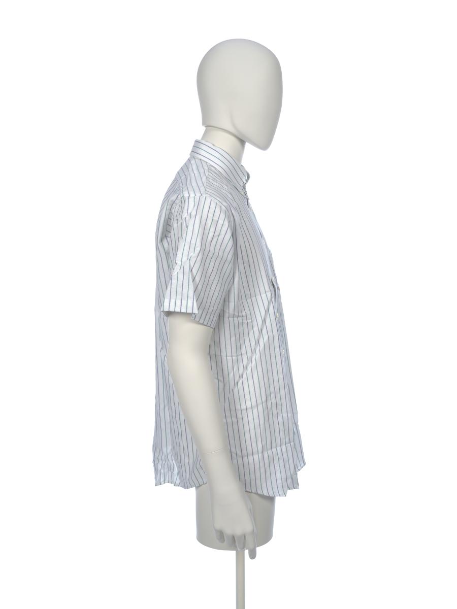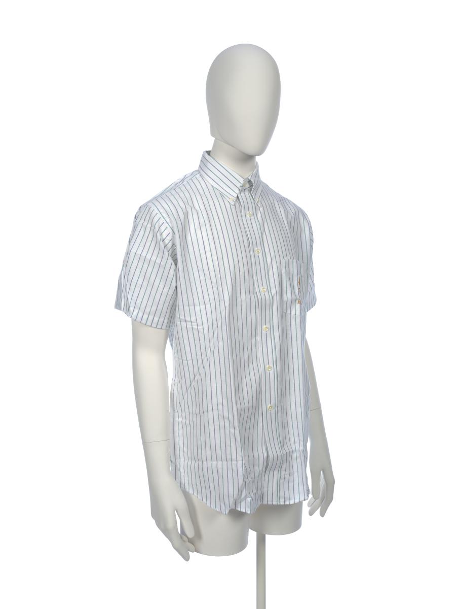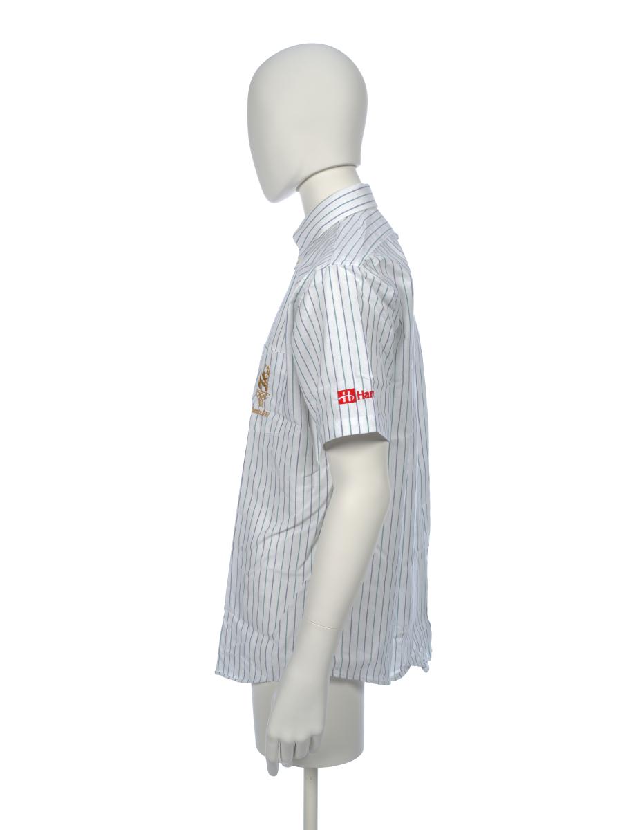 Short sleeves shirt, with fine blue and green lines. On the breast pocket, there is the Games' emblem.
