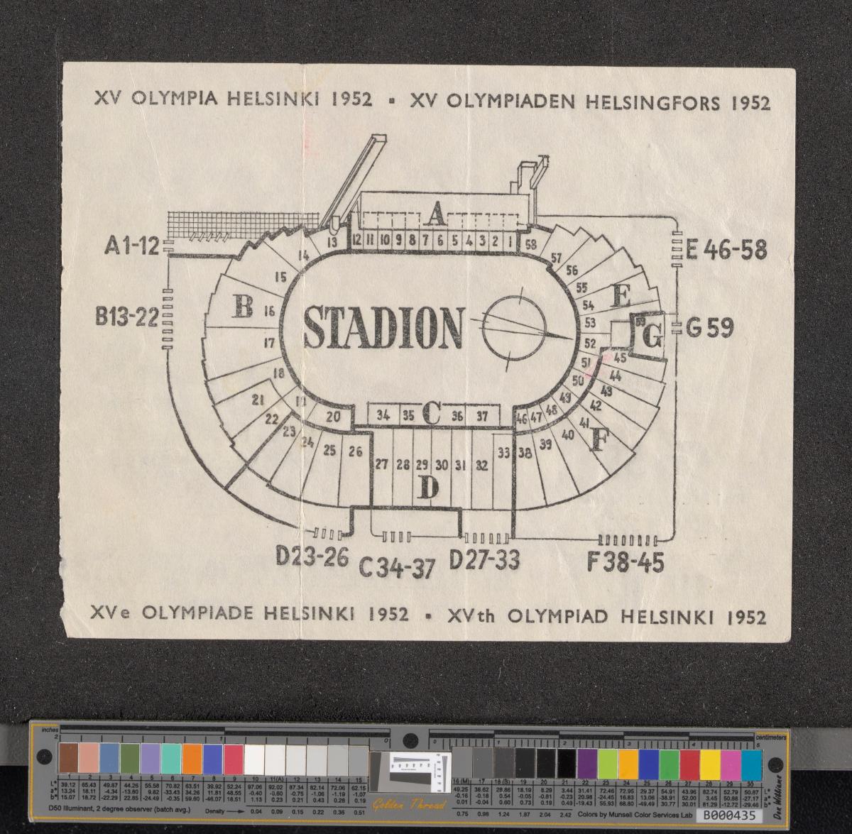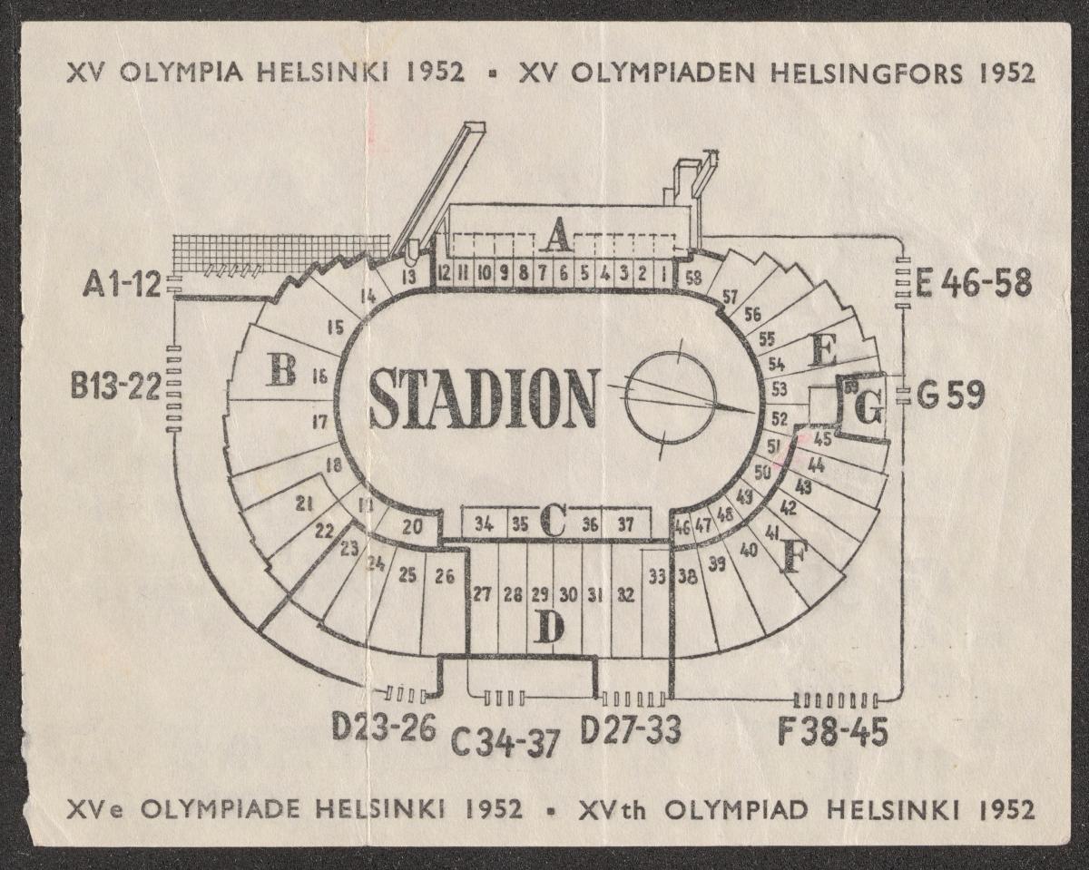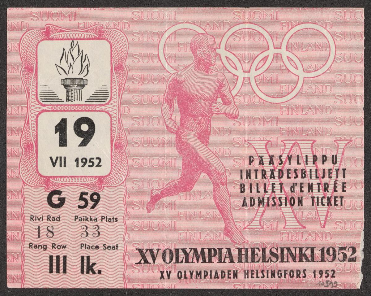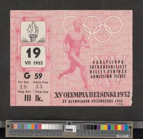 Helsinki 1952, admittance ticket to the opening ceremony, July 19th.