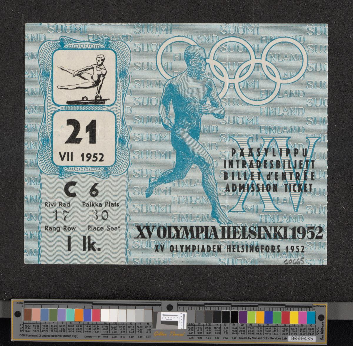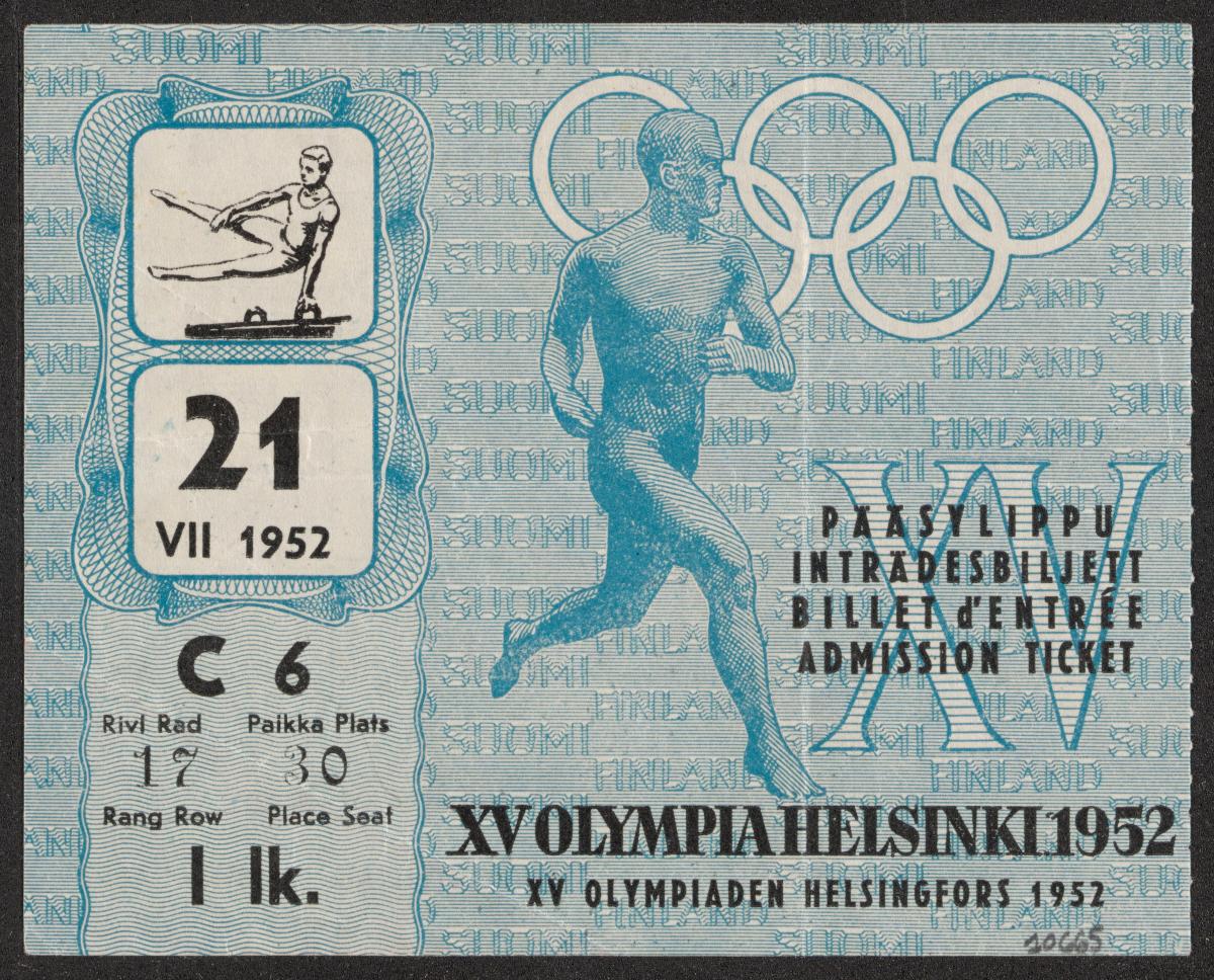 Helsinki 1952, admittance ticket to gymnastics, July 21st.