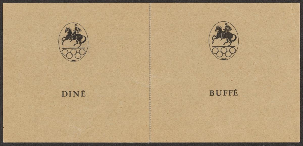 Coupon for two meals, one for the buffet and the other for dinner. Games' emblem.