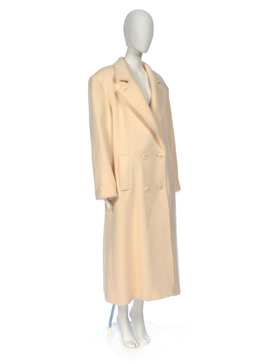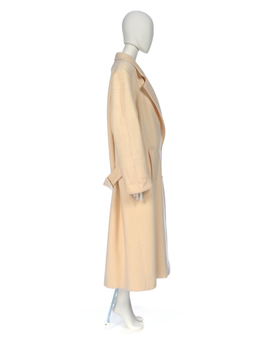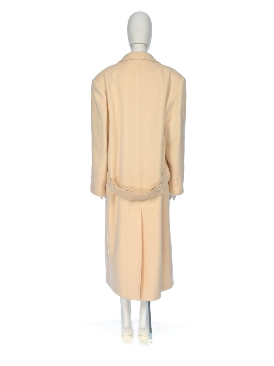 Long coat cream colored. Two pockets on the front, belt. Size 18.