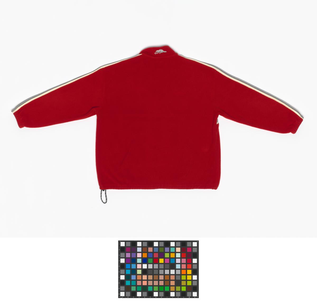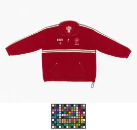 Red sweater with the Canadian NOC's emblem in the front. On the back of the collar there is the manufacturer's lofo (beaver). Size: XXL.