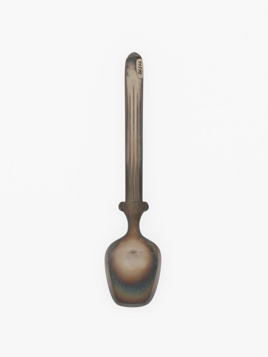 Oslo 1952, silver spoon with the Olympic symbol and a snowflake.