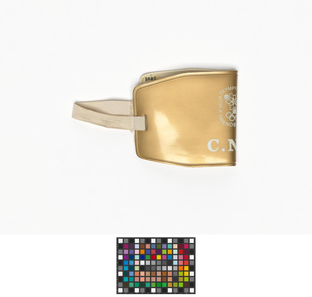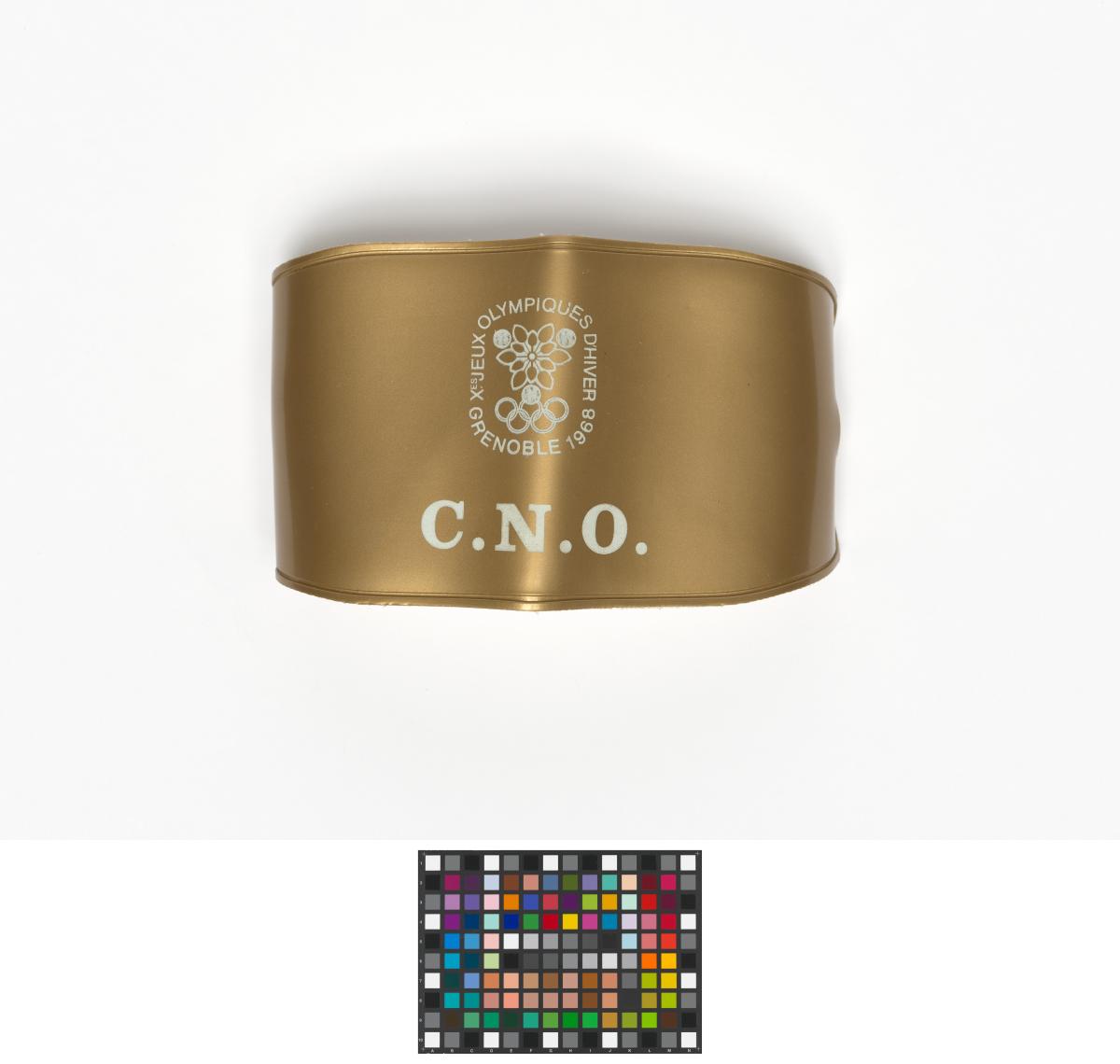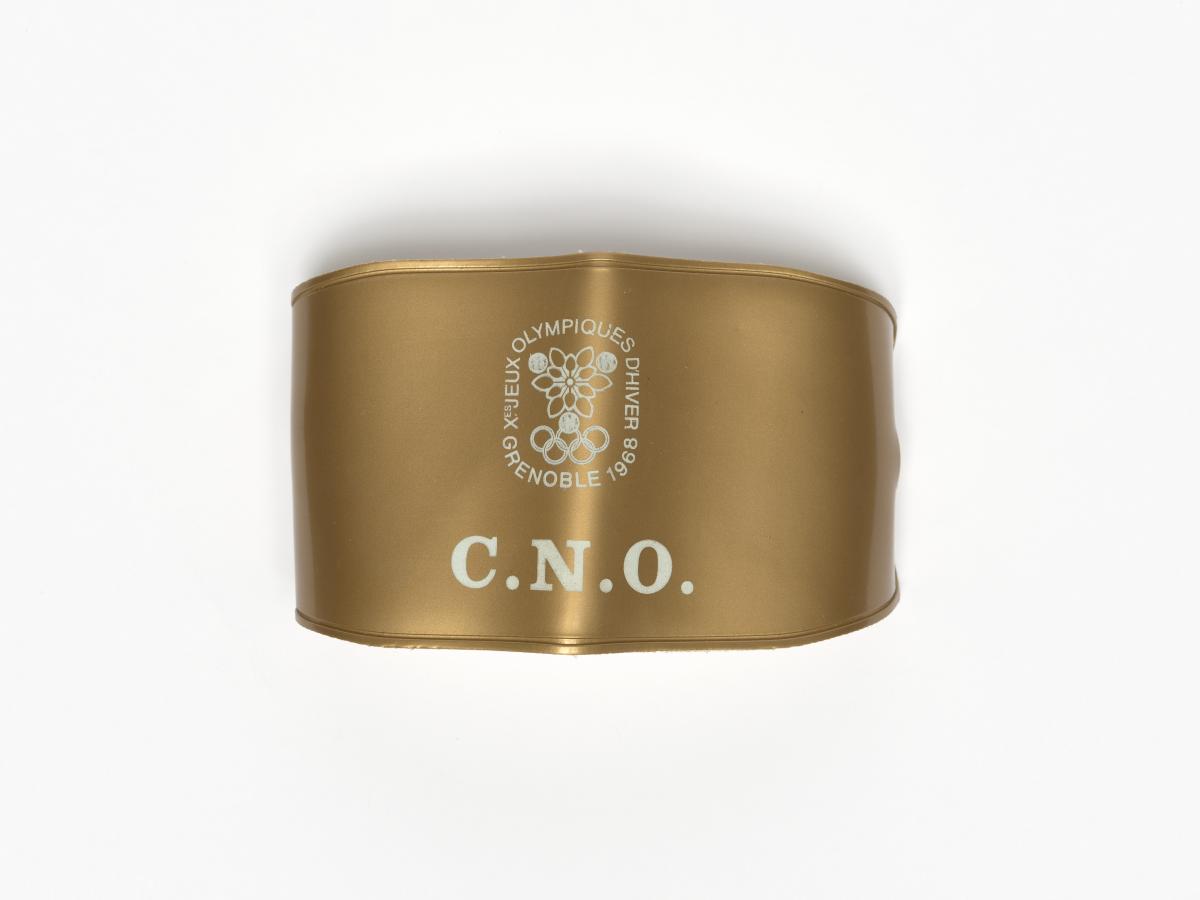 Golden armband. Games' emblem and "C.N.O." written underneath. White elastic to fix it to the arm.
