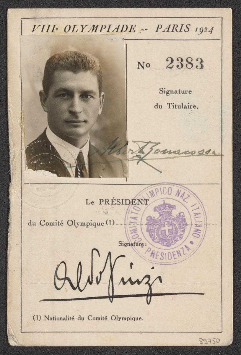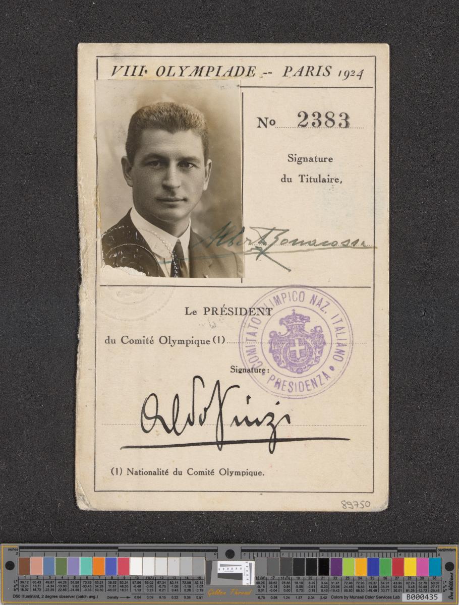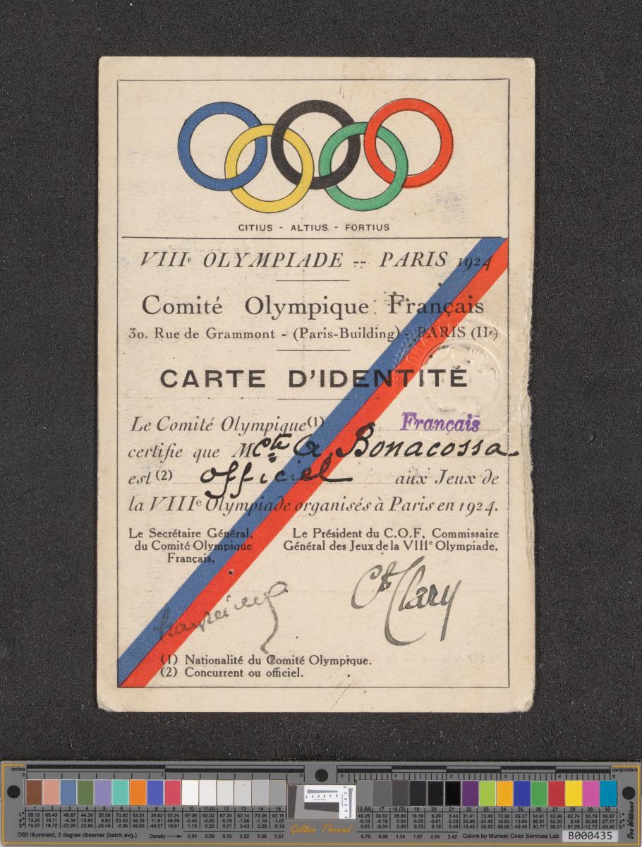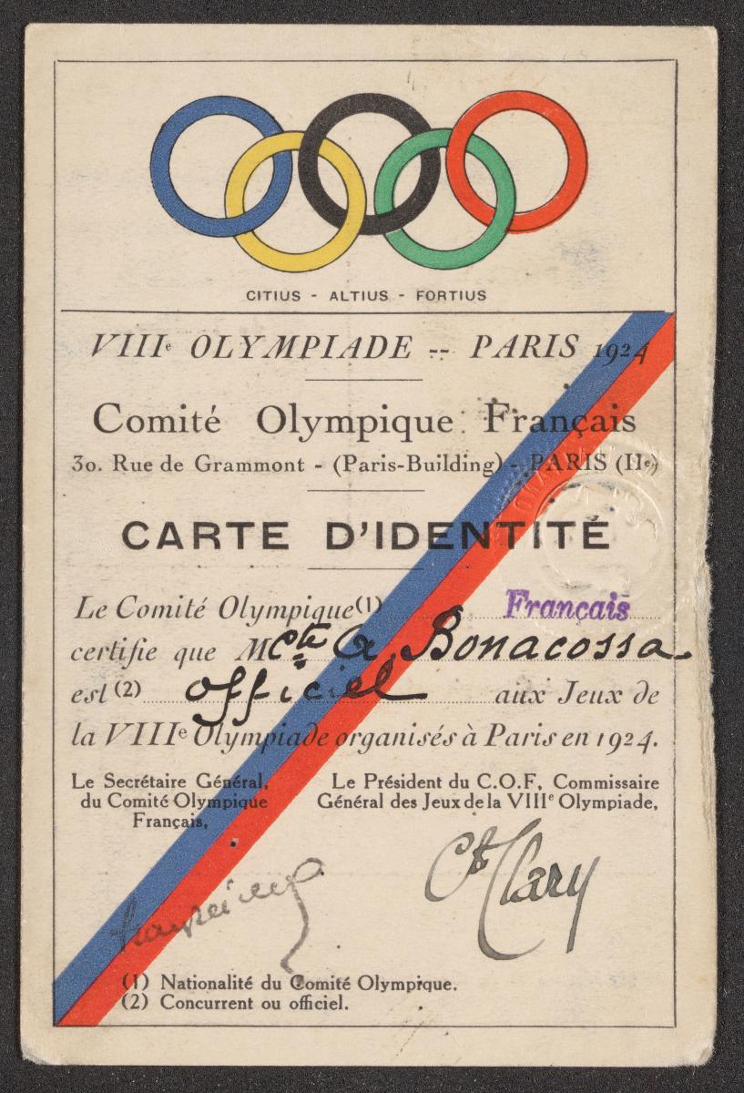 Paris 1924, identity card of Count Alberto BONACOSSA (ITA).