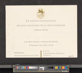 Stockholm 1956, invitation card to the dinner given by the Organising Committee.
