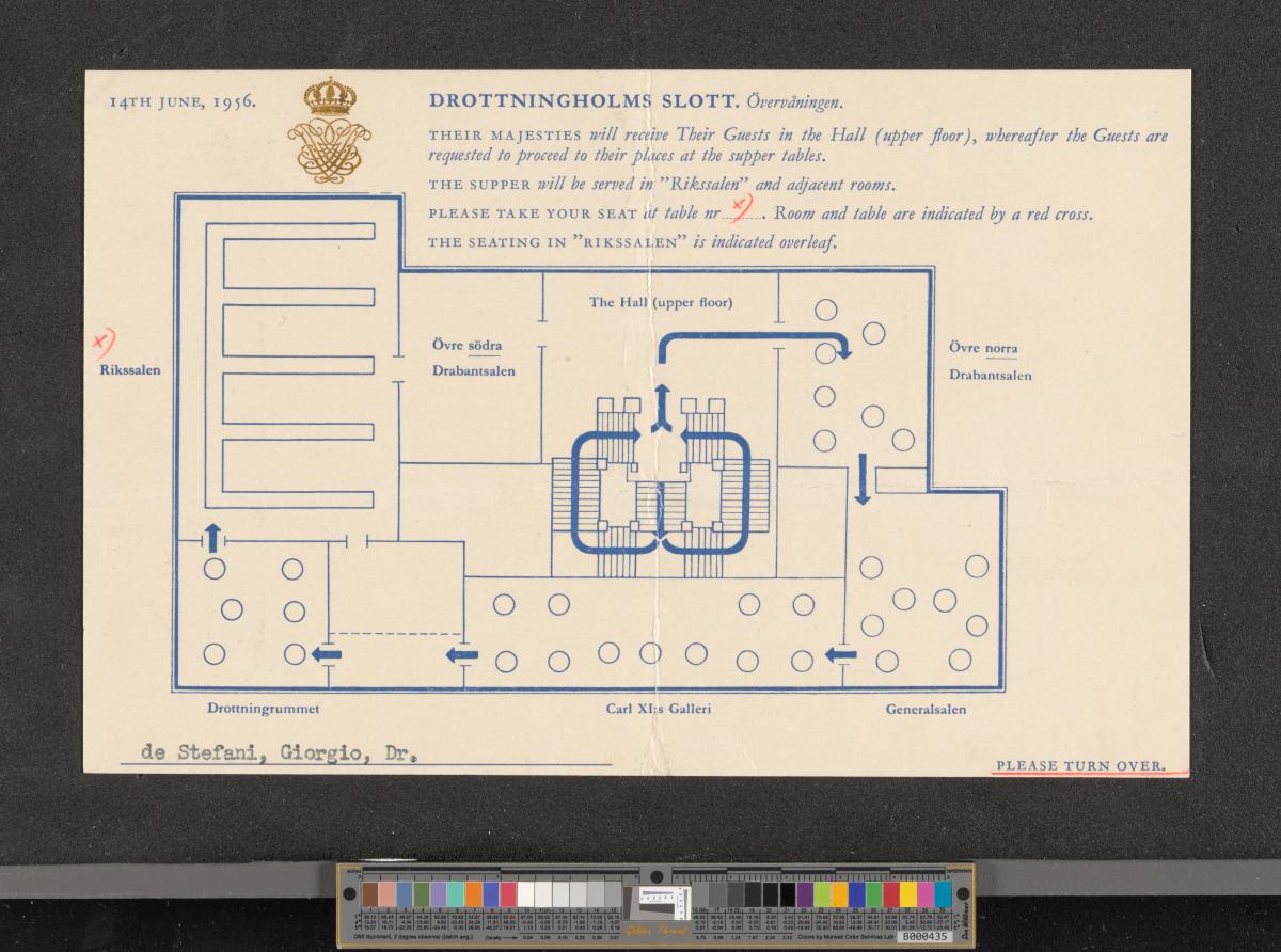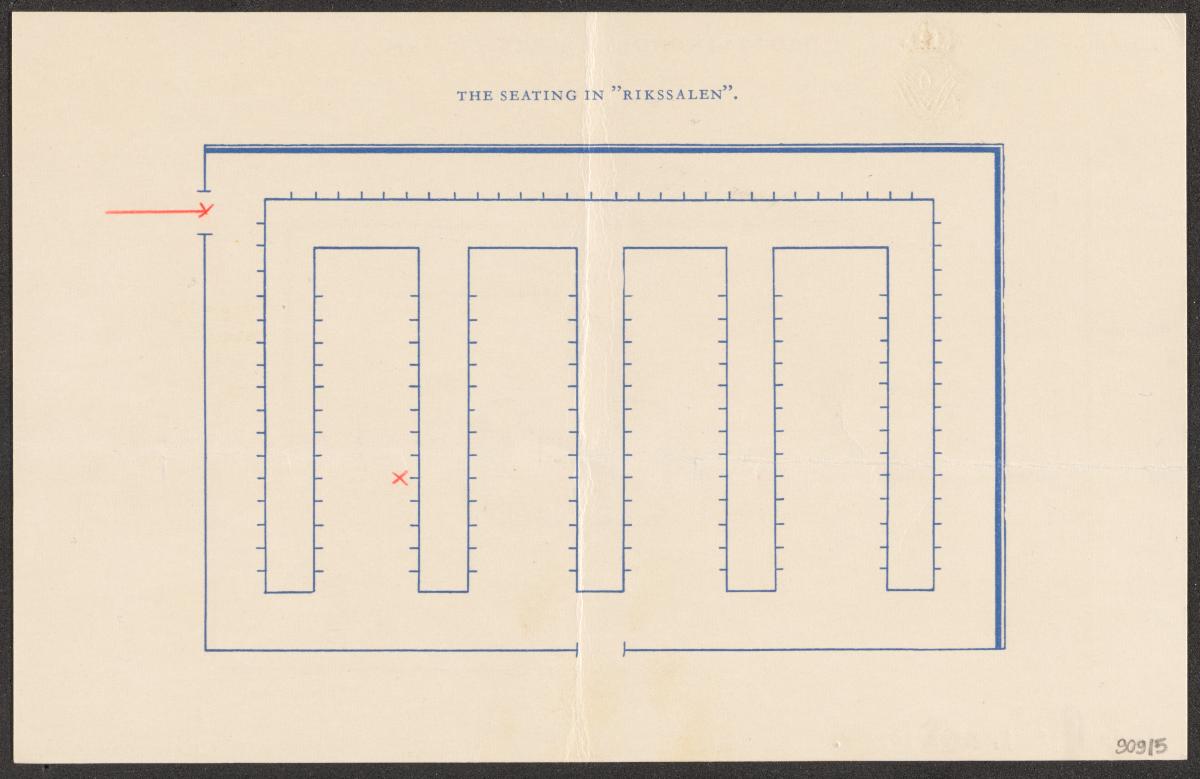 Invitation with the seating and access to the room "Rikssalen" for the supper given by the king.