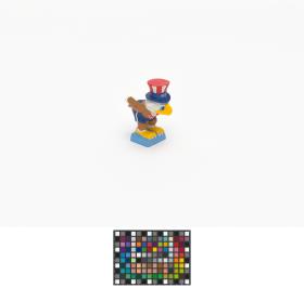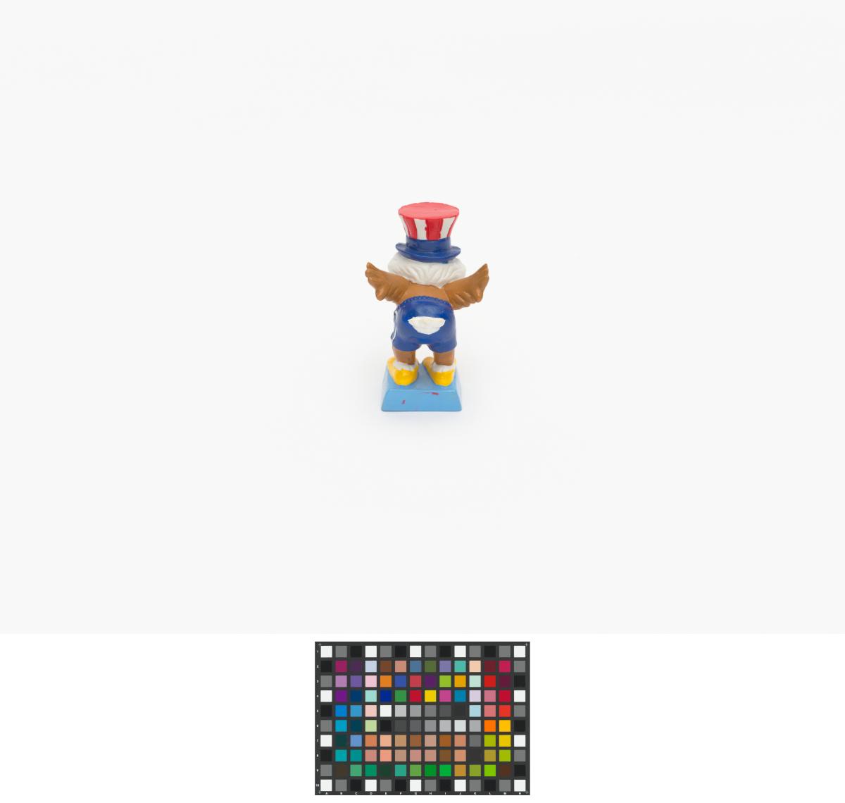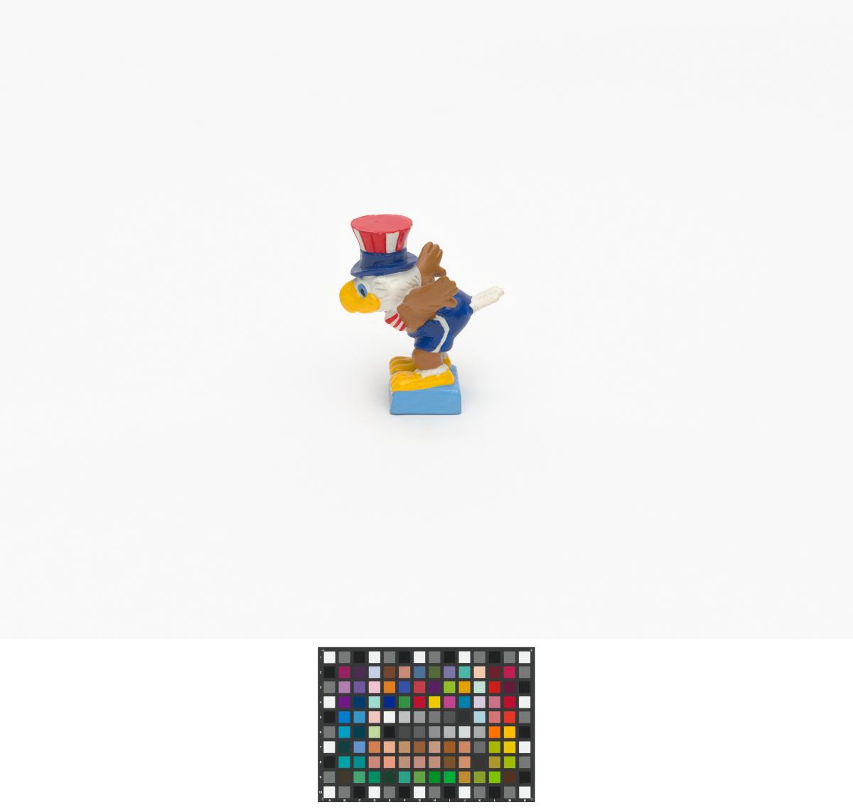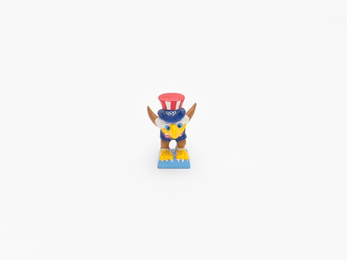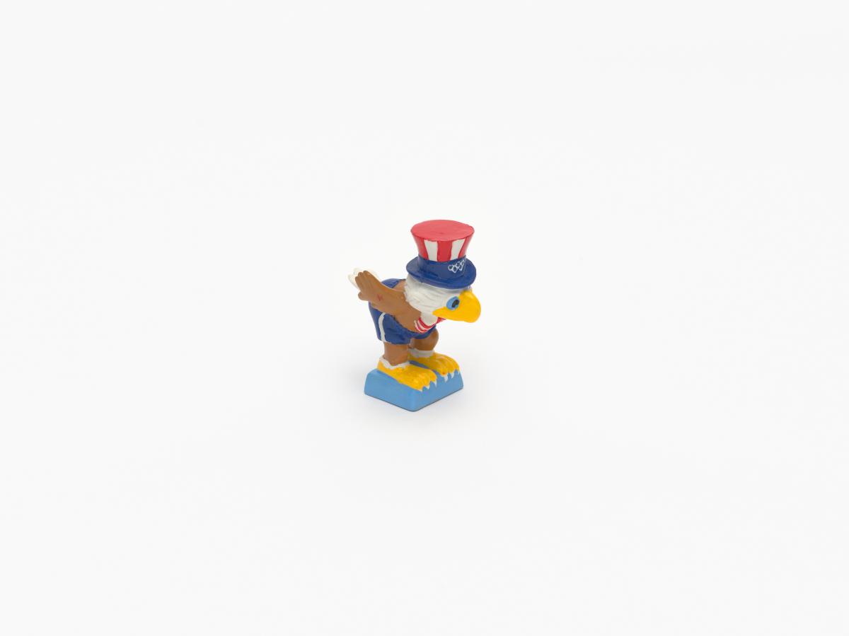 Los Angeles 1984, figurine of Sam, the Games' mascot, at the start of a swimming event.