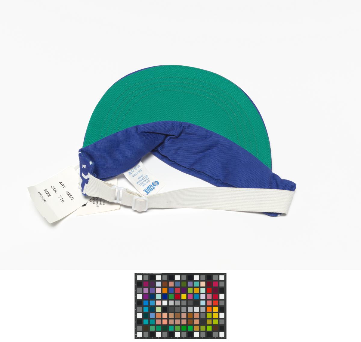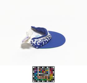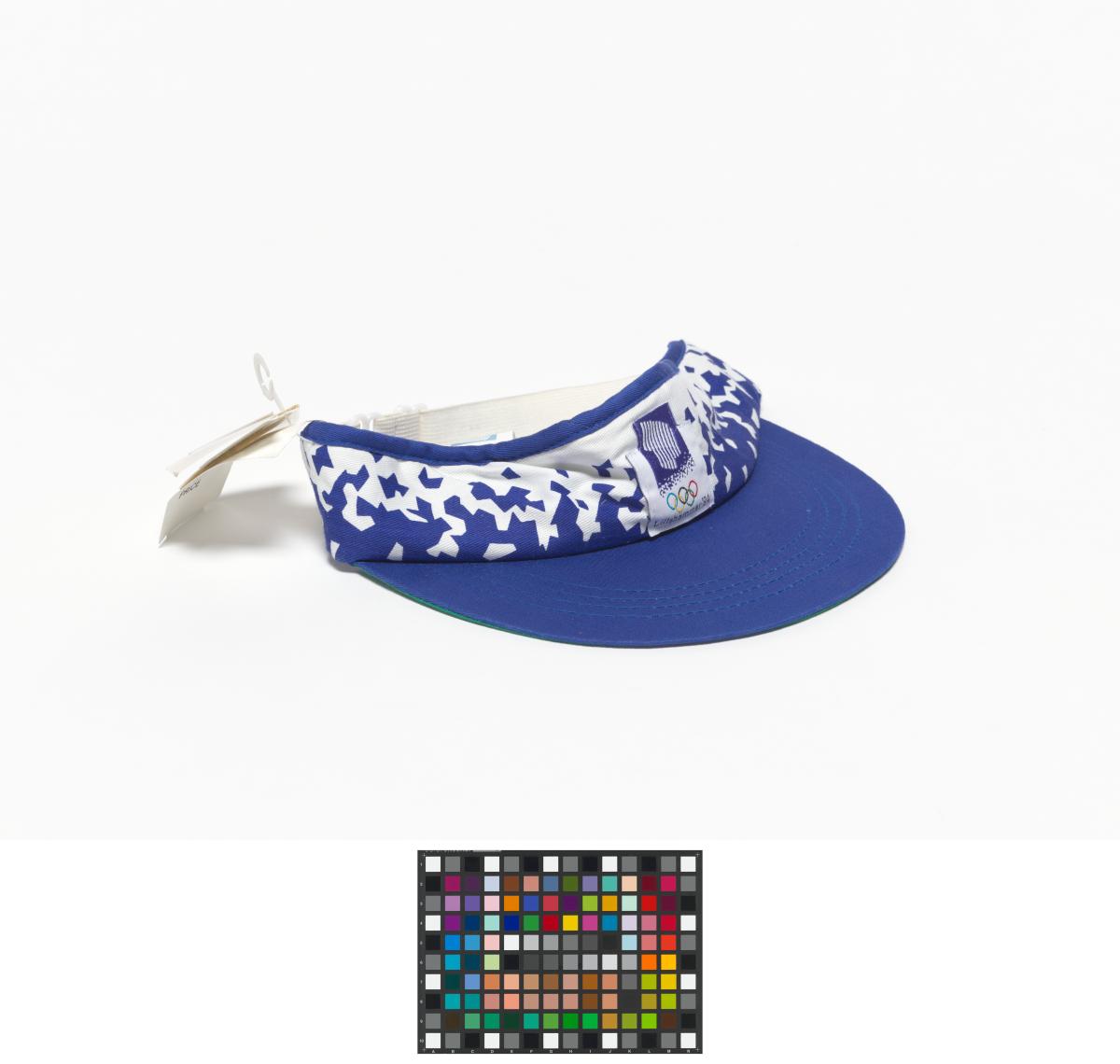 Blue and white eyeshade with the Look of the Games motives and emblem of the Games. One size.