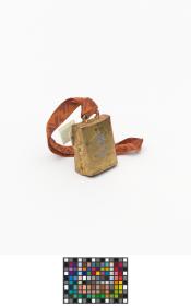 Big bell with the Games' Emblem. Orange/Bordeaux ribbon.