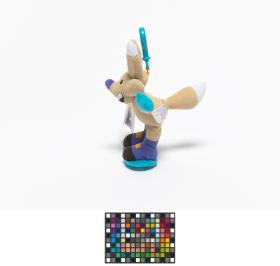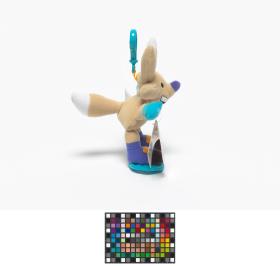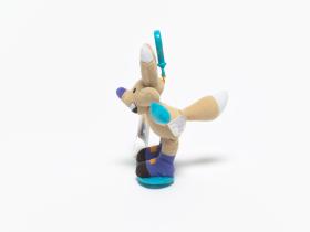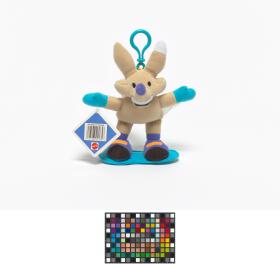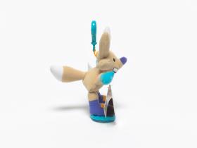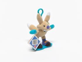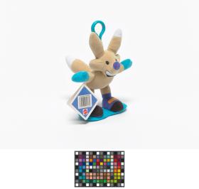 Copper mascot with a clothe snowboard and a clip at the back of the head.