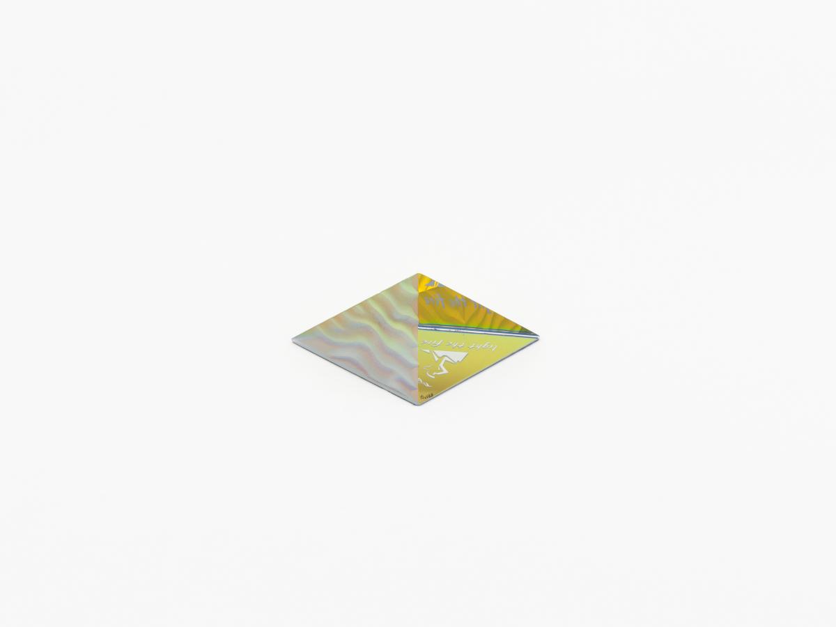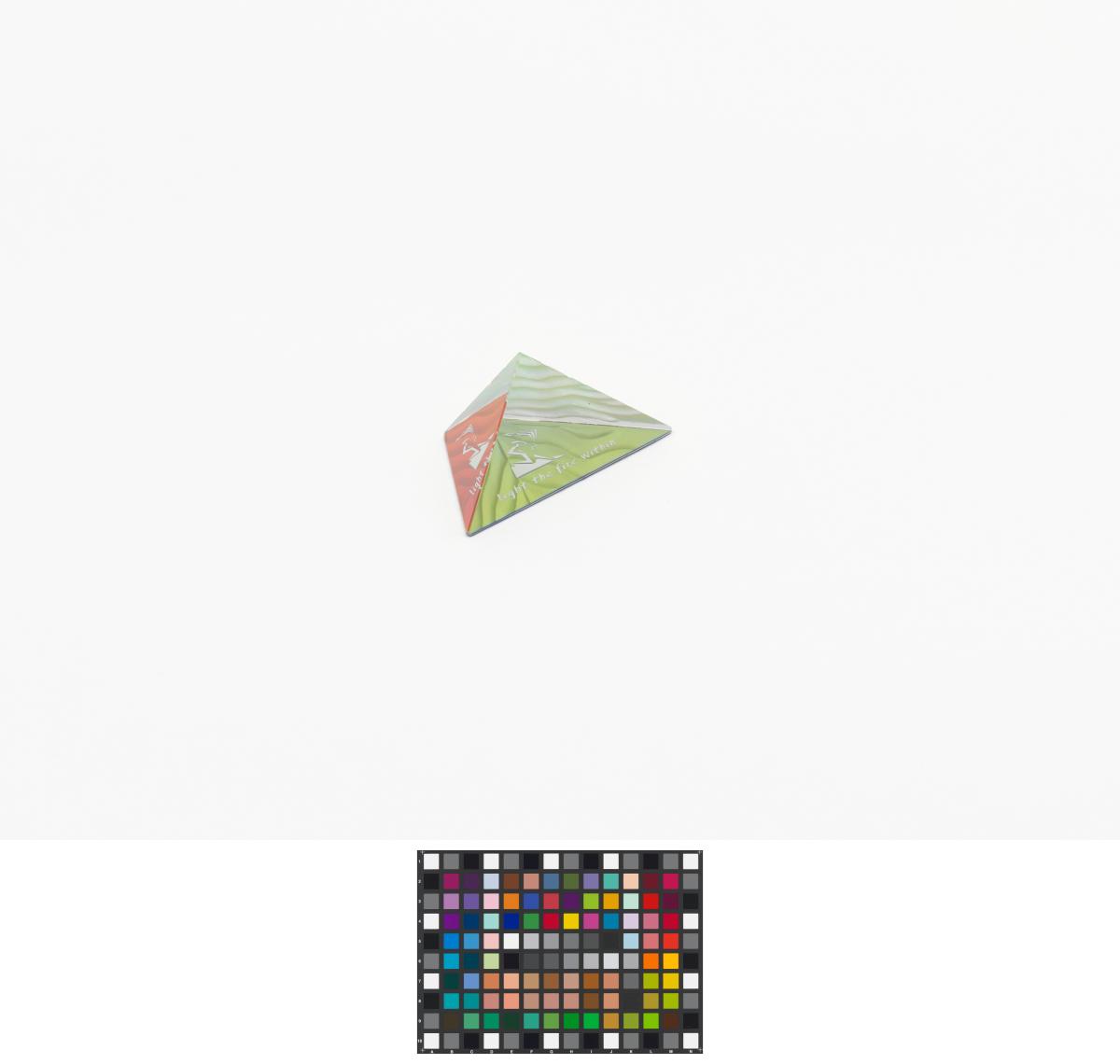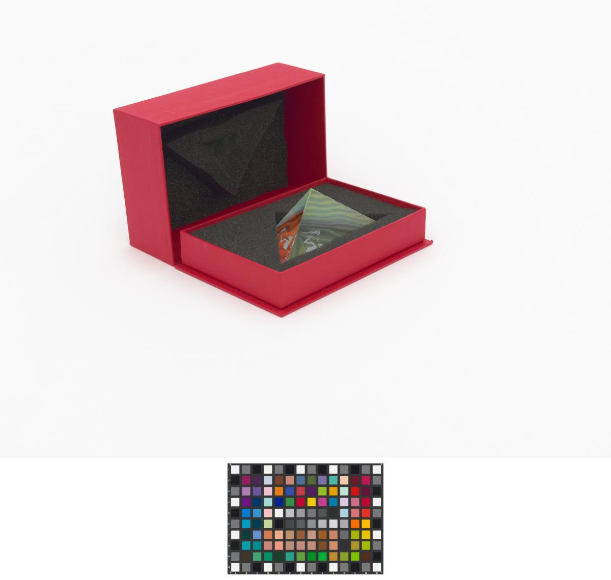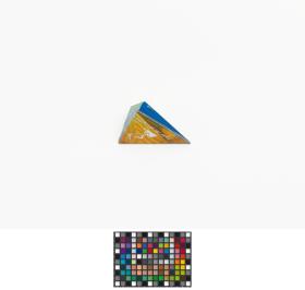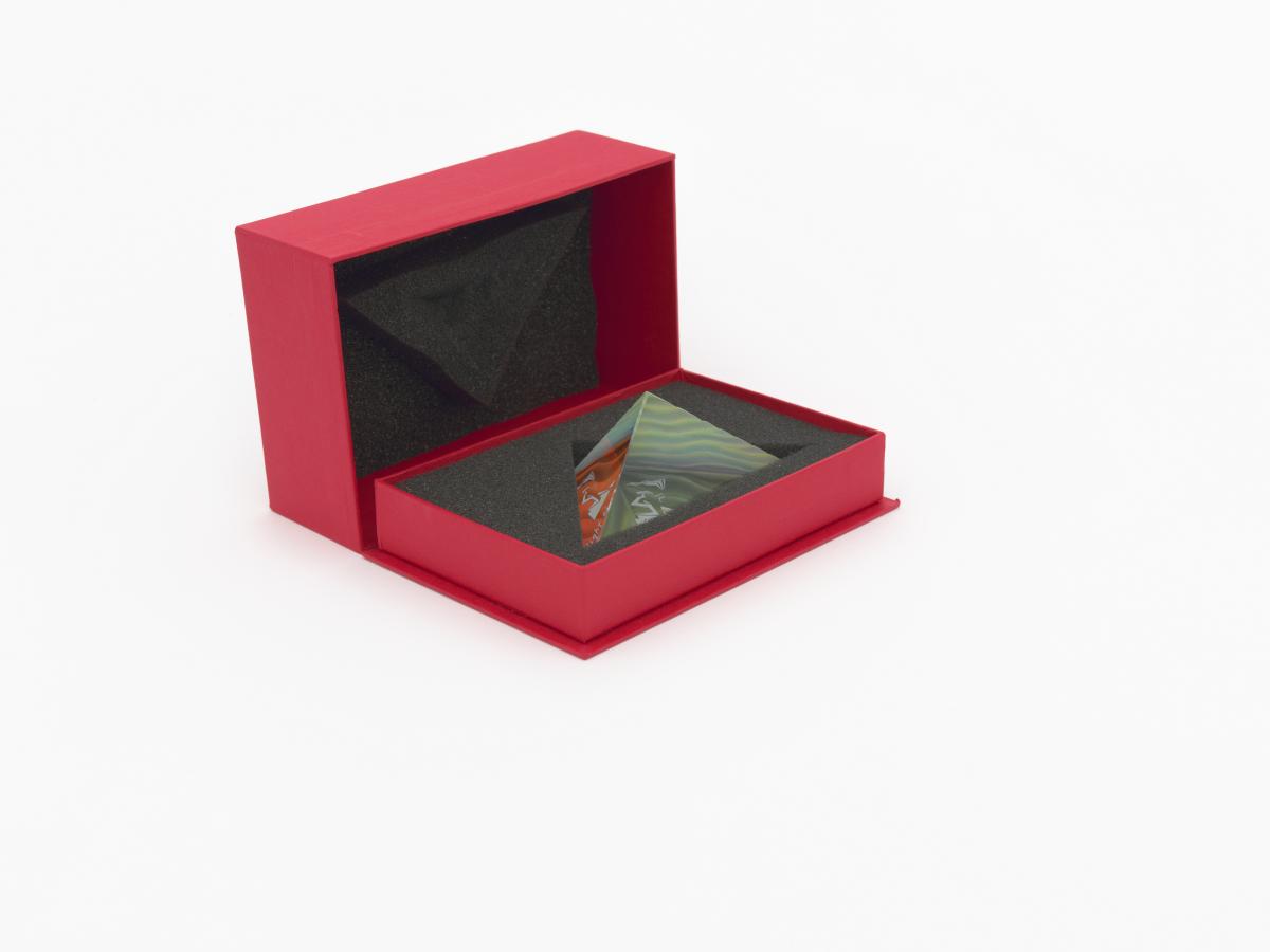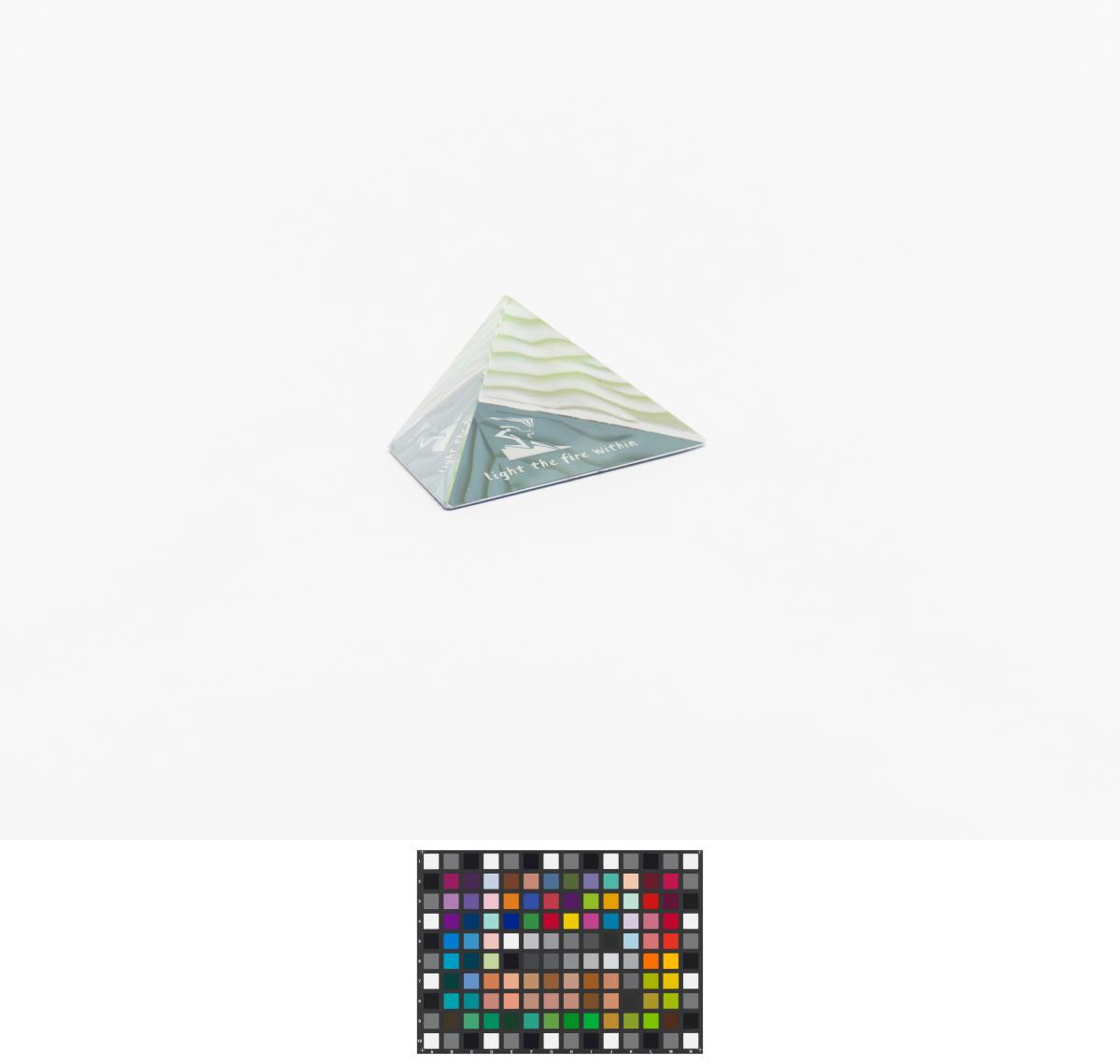 Pyramid-shaped cristal paper-weight with the Olympic Torch Relay Emblem.