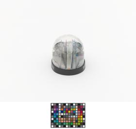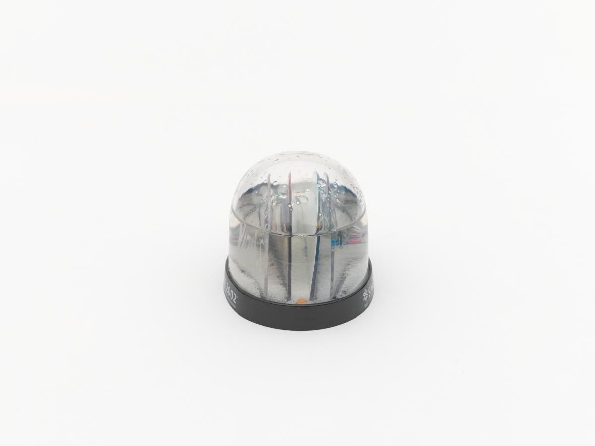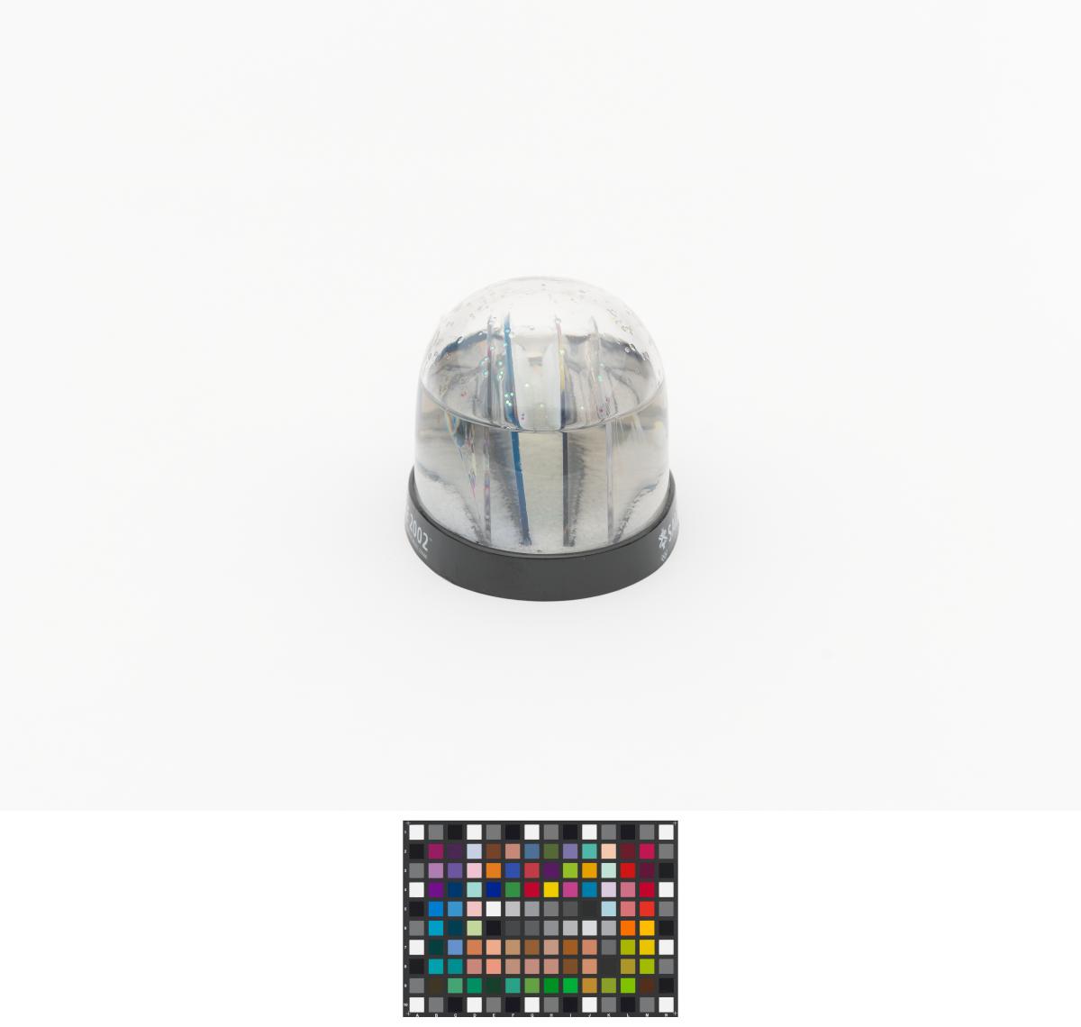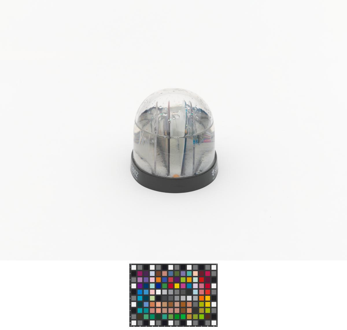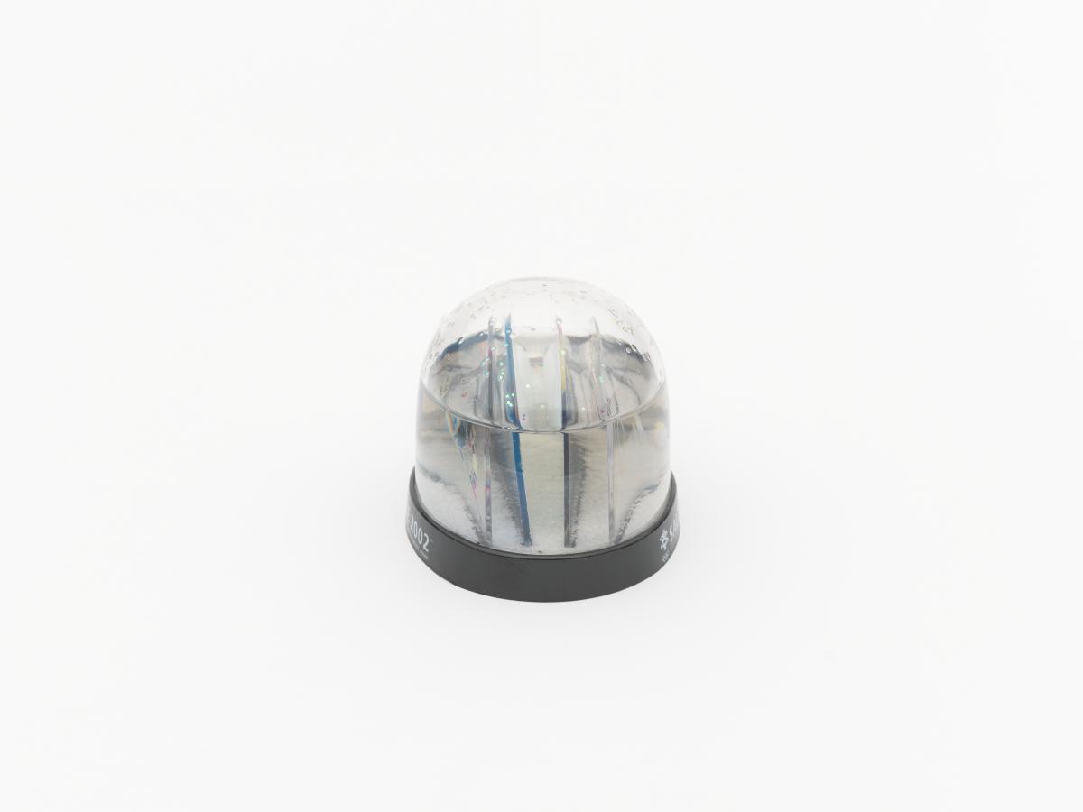 Snow globe with the mascots on a sledge on one side and the petroglyphs mascots on the other.