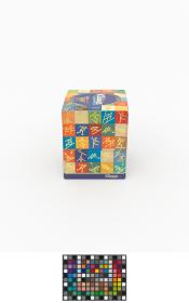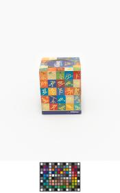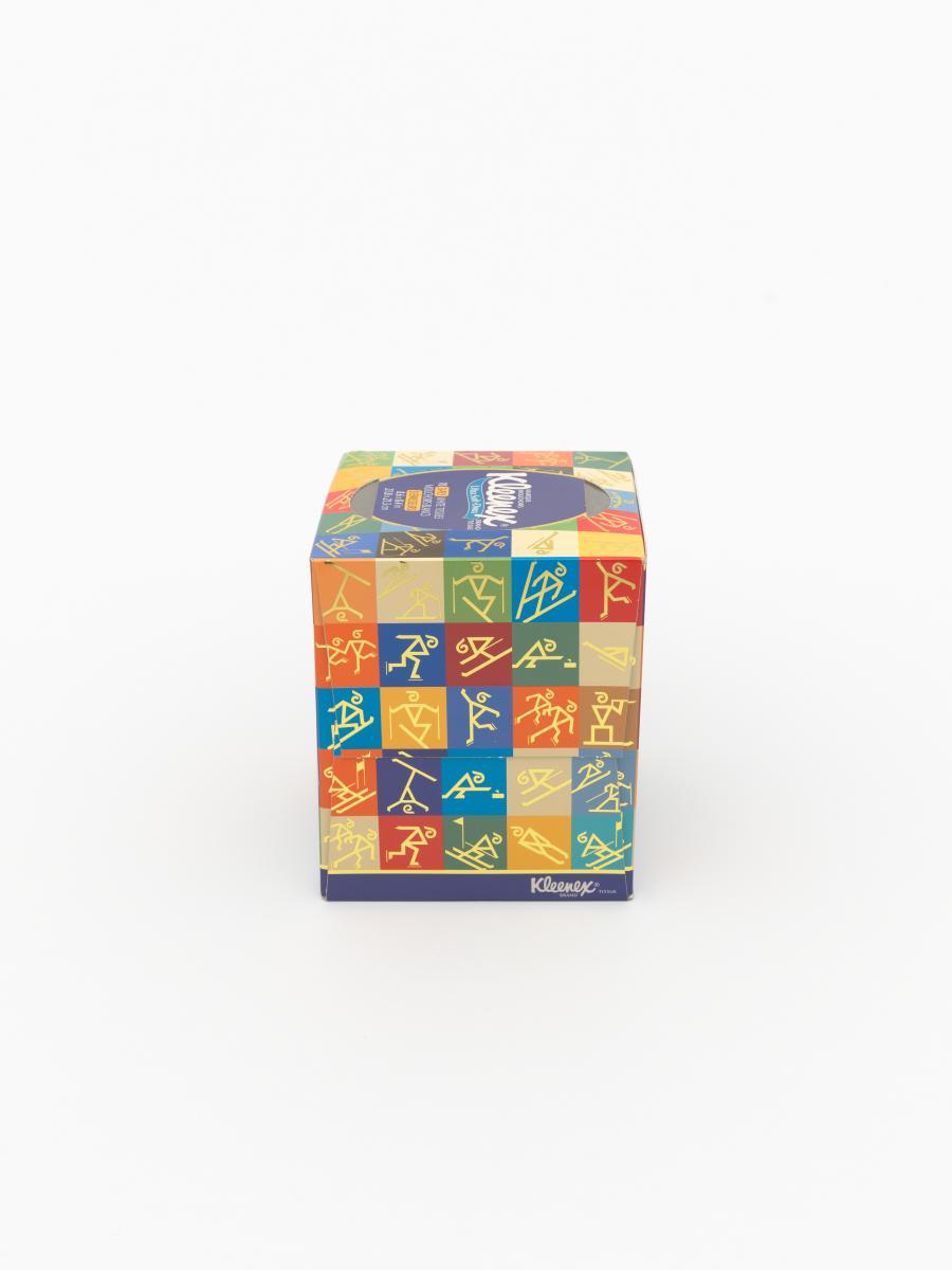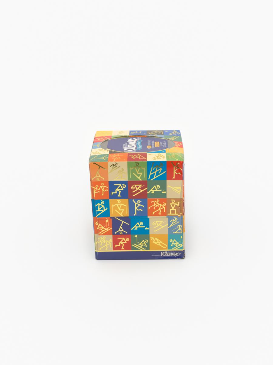 Squared multicolour box of handkerchiefs with the sports' pictograms.