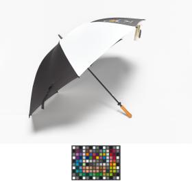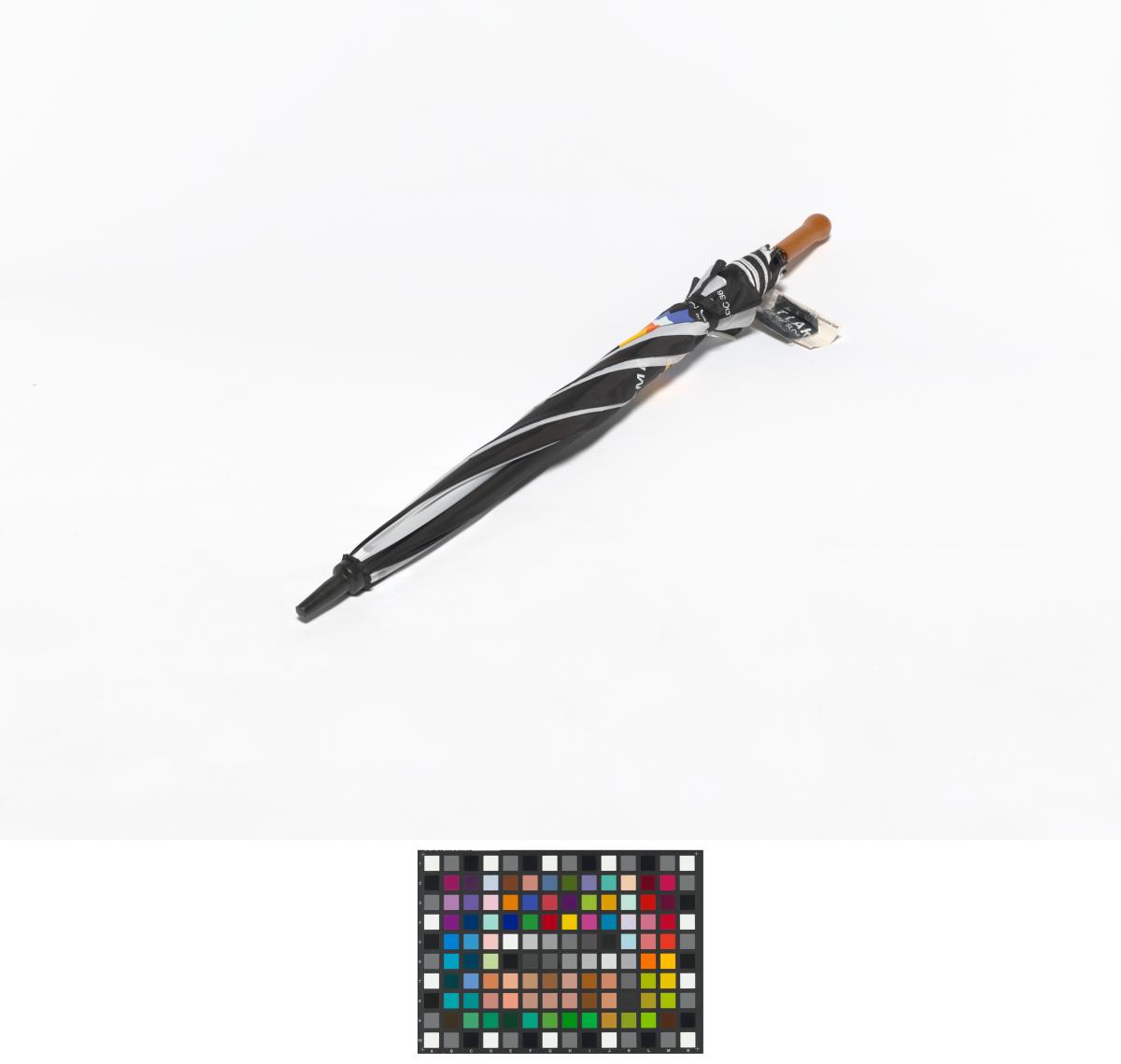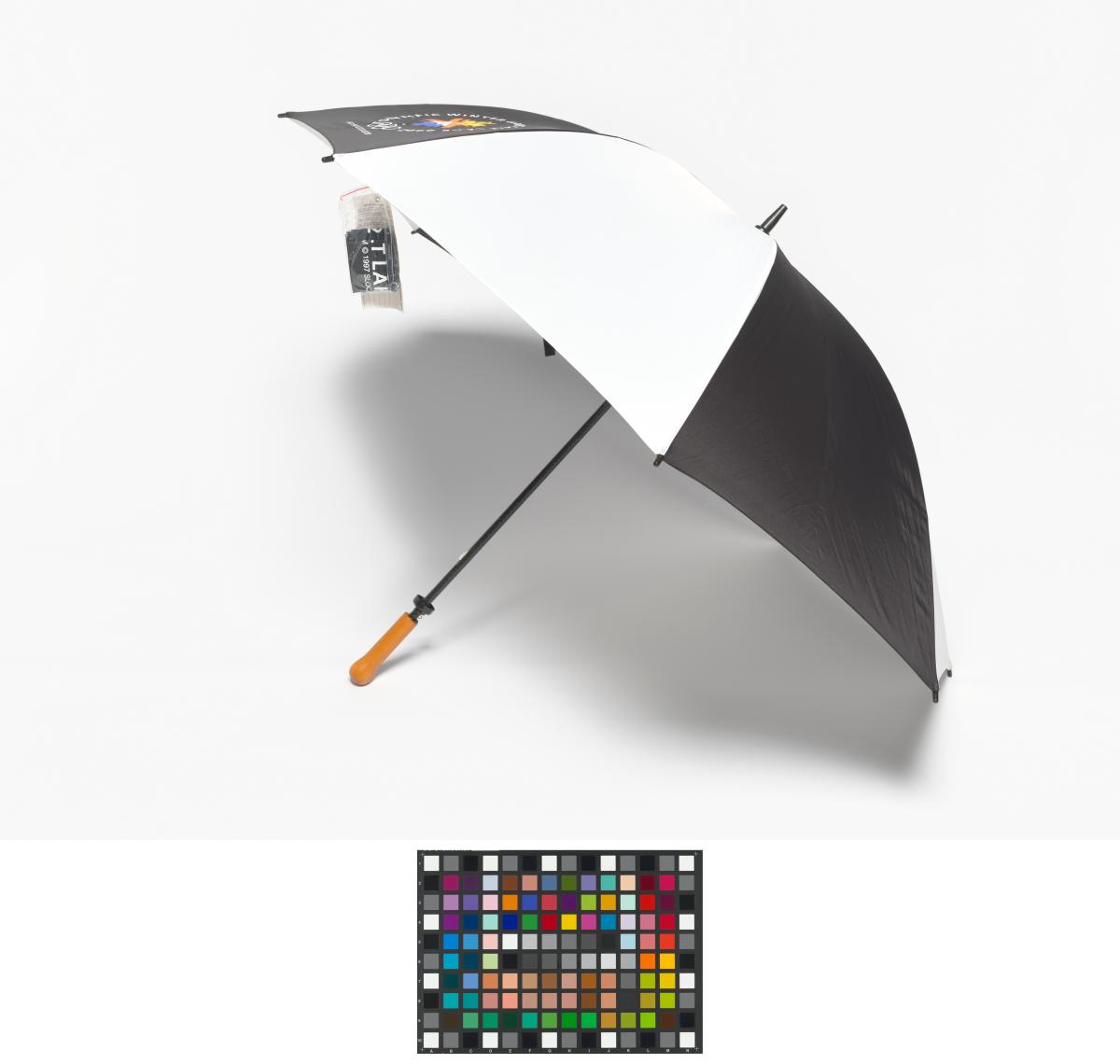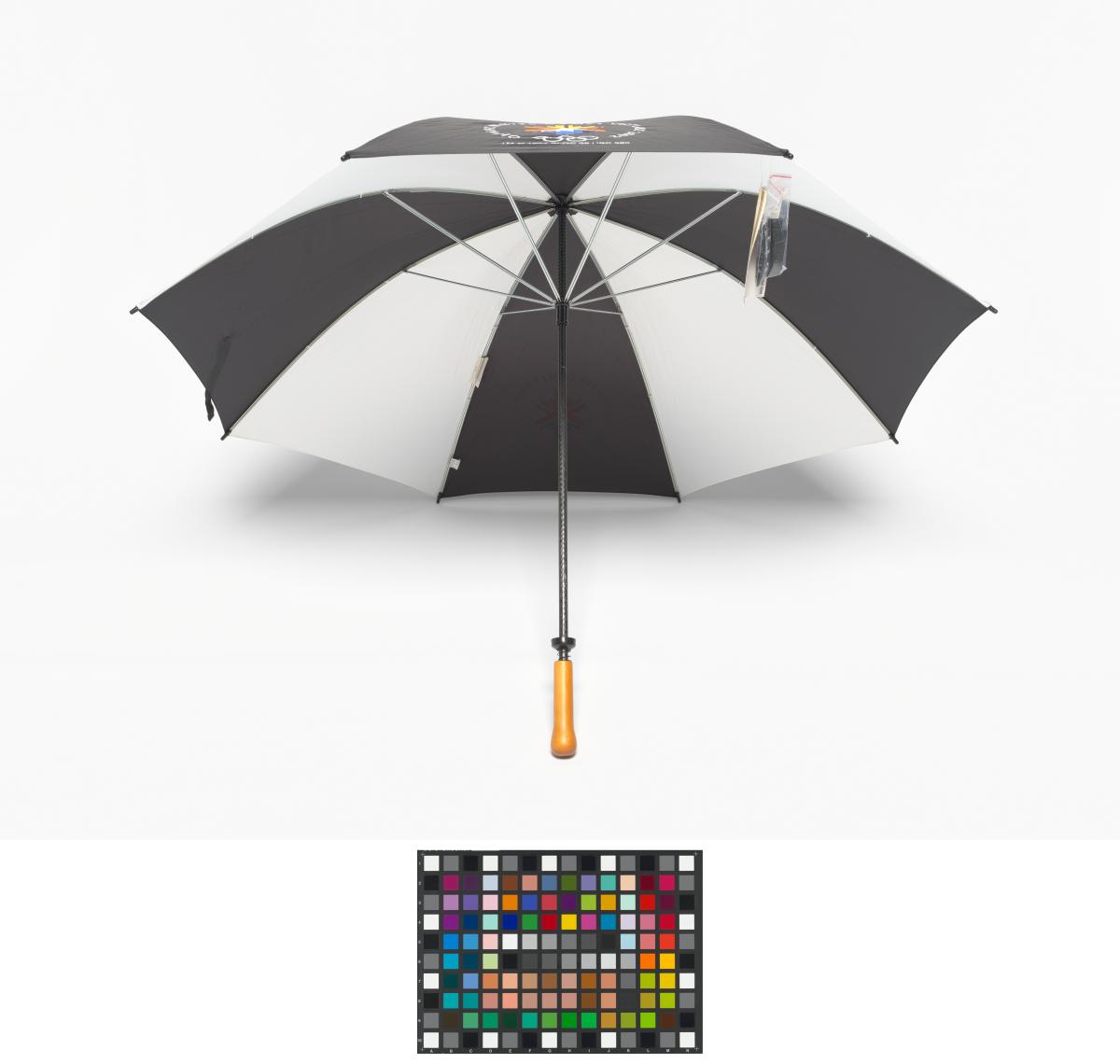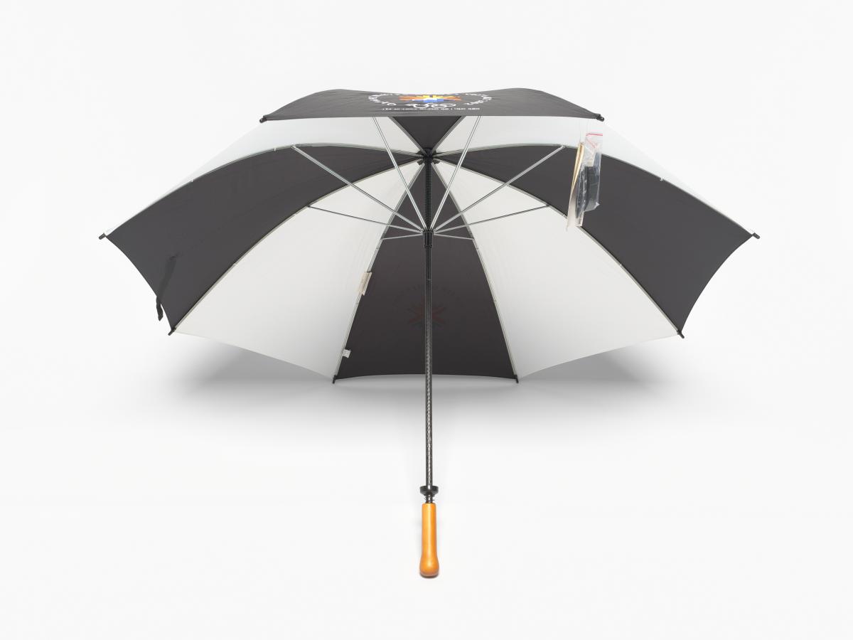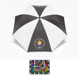Black and white umbrella with the Games' Emblem.
