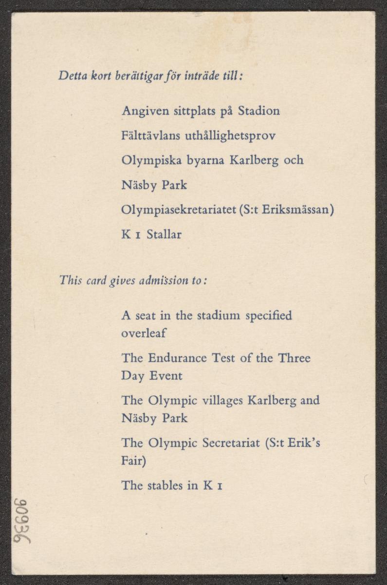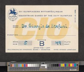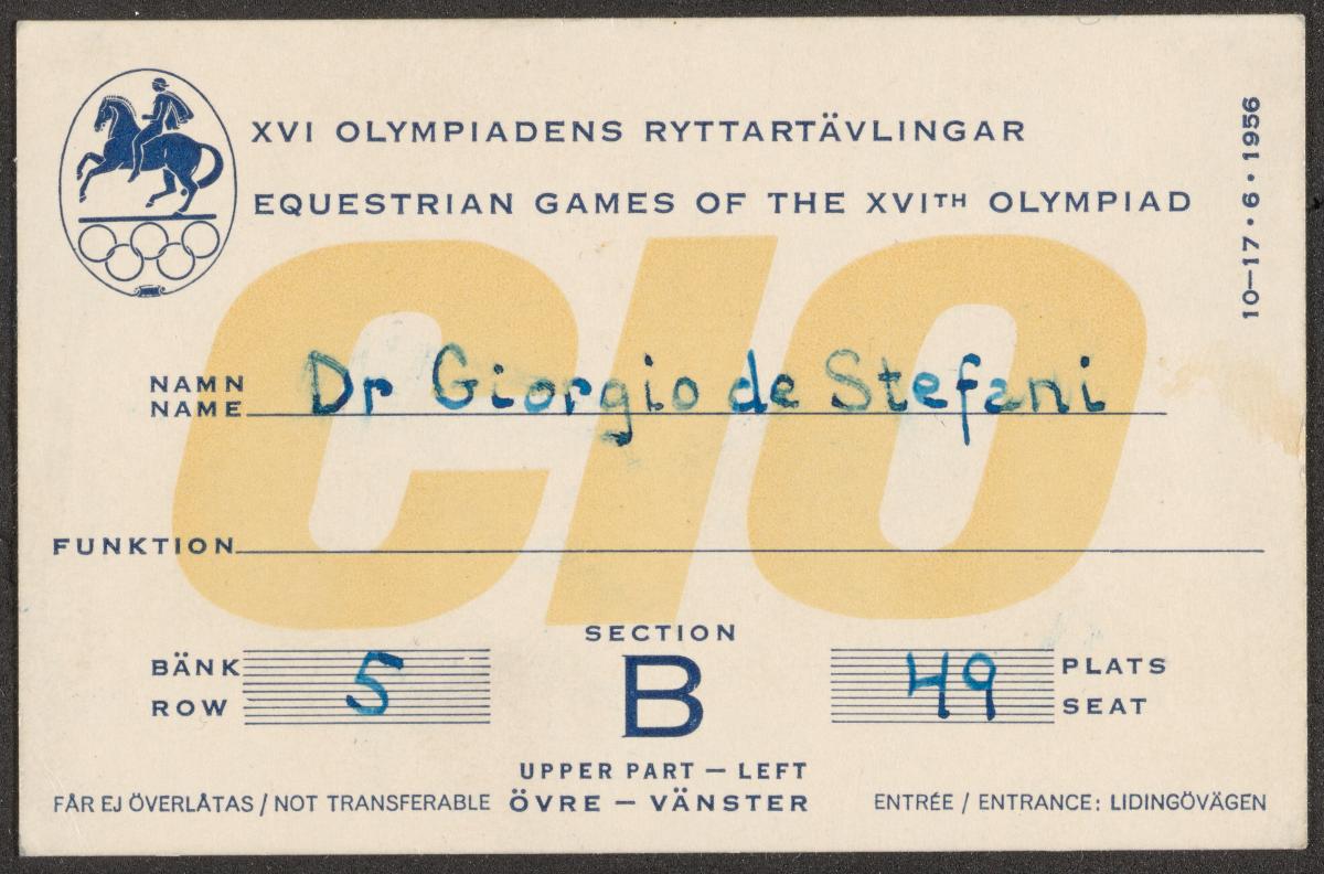Stockholm 1956, pass given to Giorgio DE STEFANI (ITA).