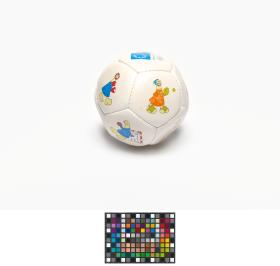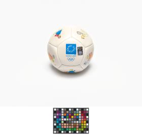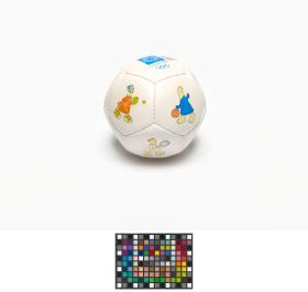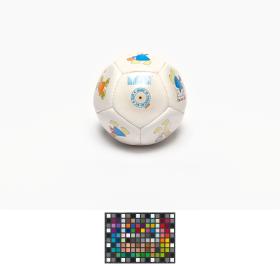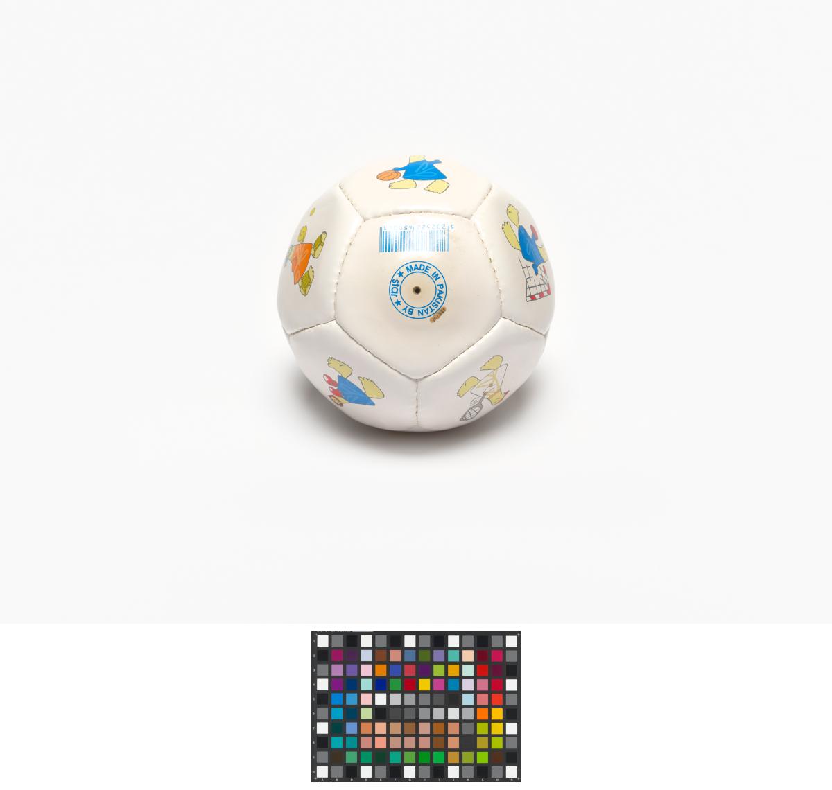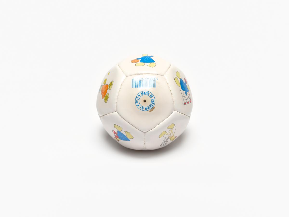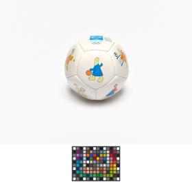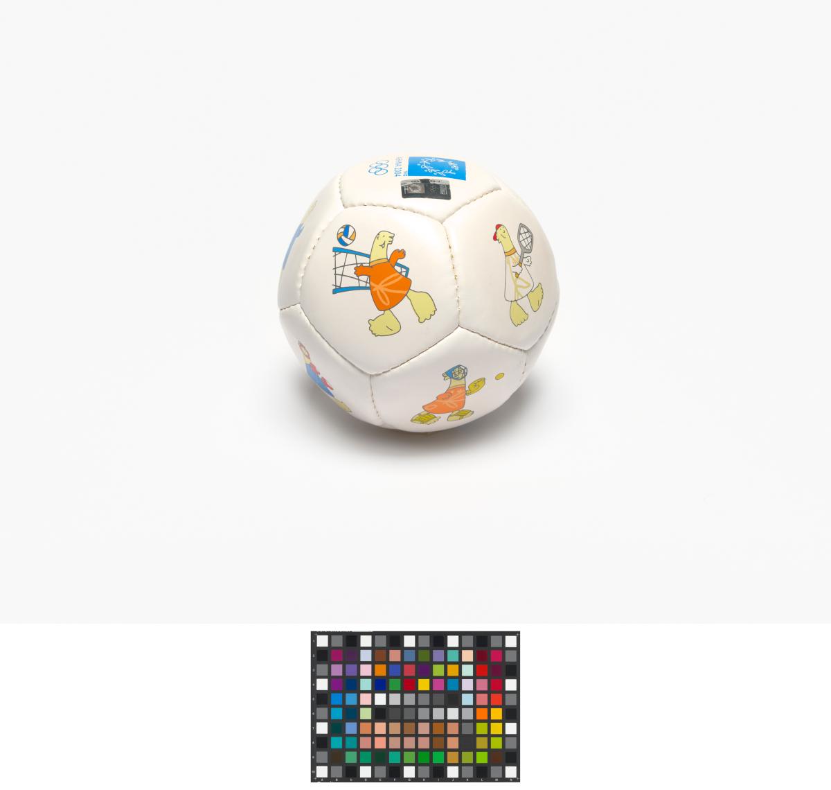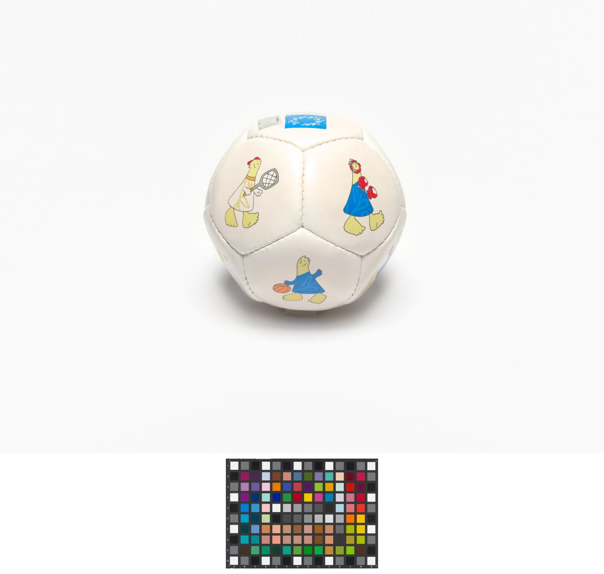 Athens 2004, ball with Athena and Phevos, the Games' mascots, practising various sports, and the Games' emblem.