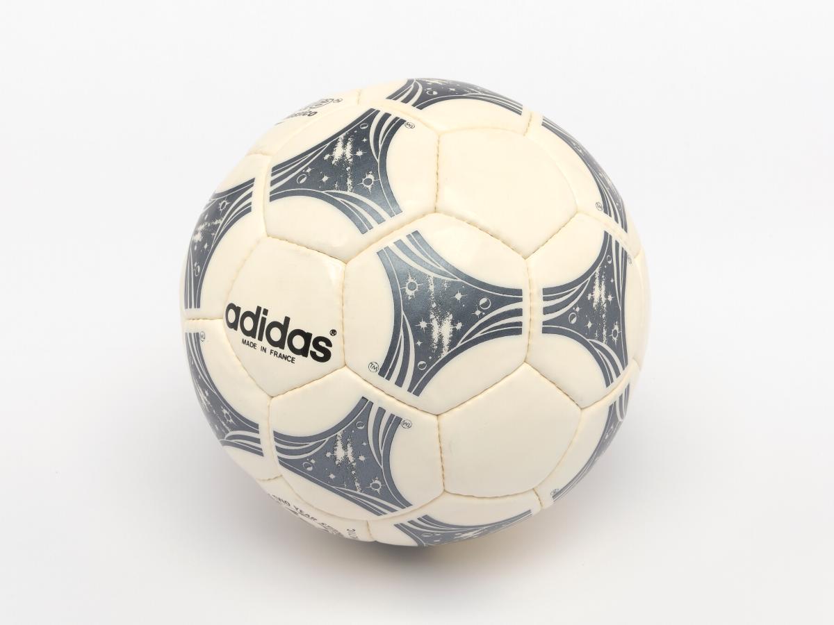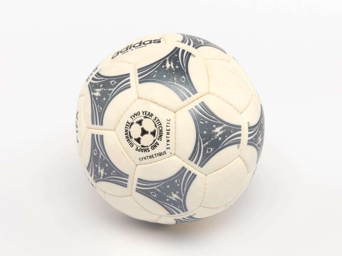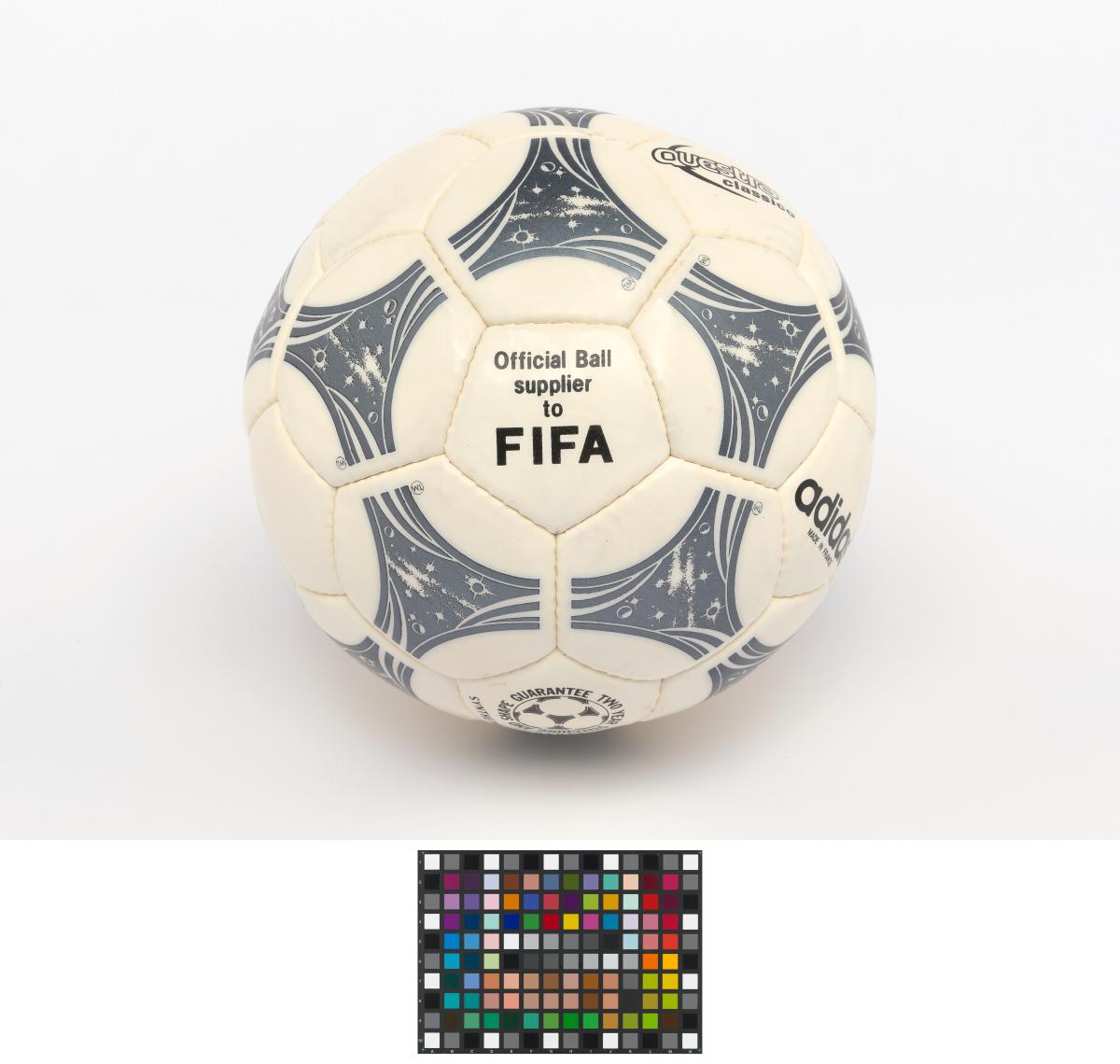 Caption: "Adidas, Official Ball supplier to FIFA, Guarantee two year stitching and shape, Synthétique, Synthetic, Questra Classico".
