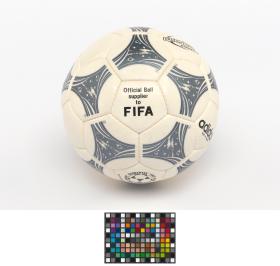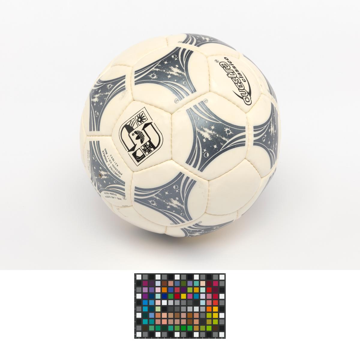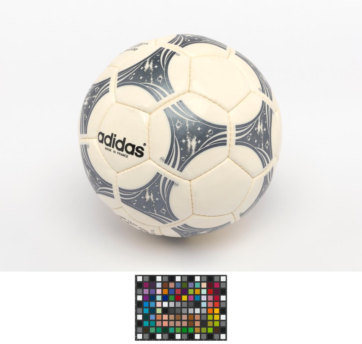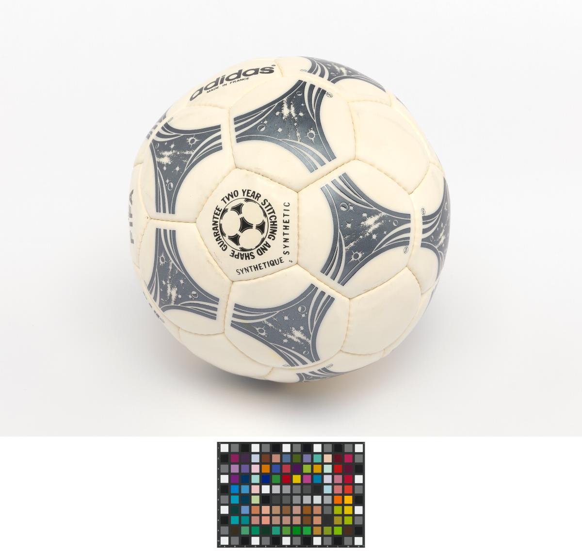 Caption: "Adidas, Official Ball supplier to FIFA, Guarantee two year stitching and shape, Synthétique, Synthetic, Questra Classico".