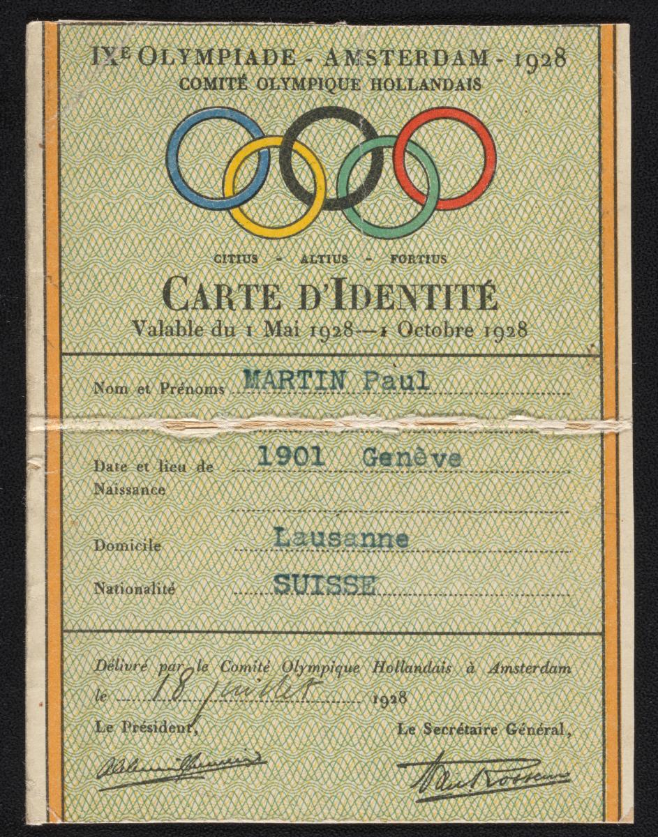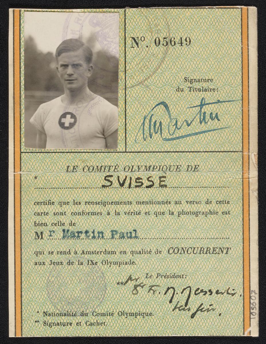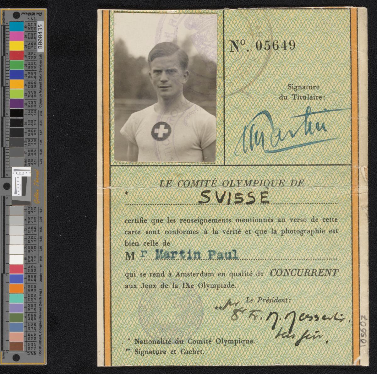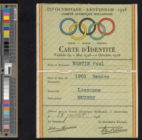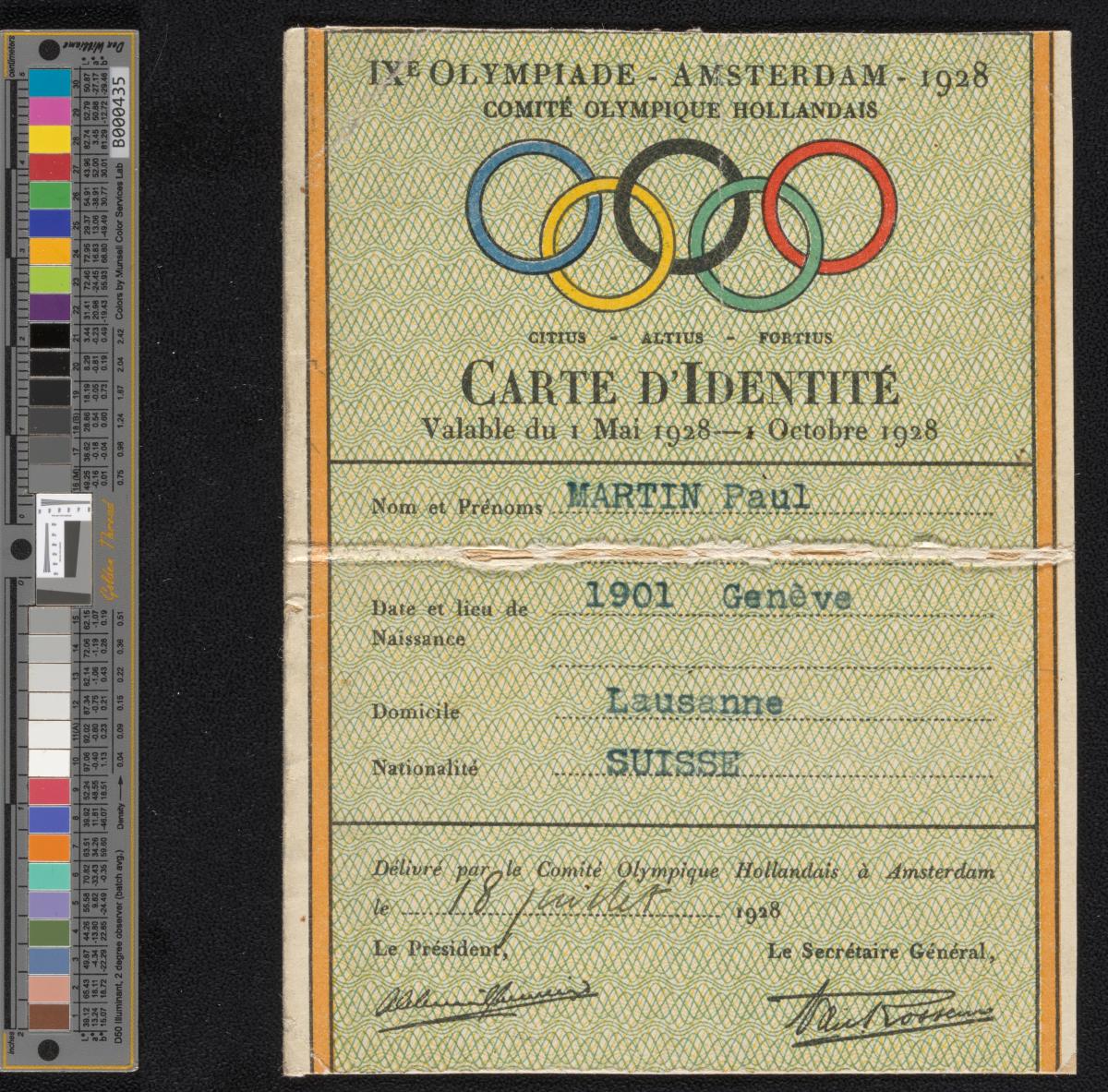 Amsterdam 1928, identity card issued for Paul MARTIN (SUI).