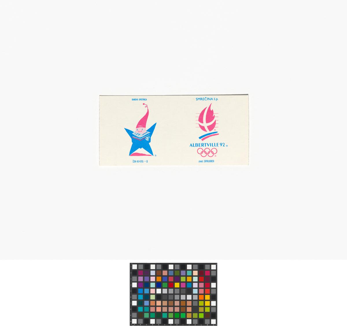 Albertville 1992, matchbox with the Games' emblem and Magic, the Games' mascot.