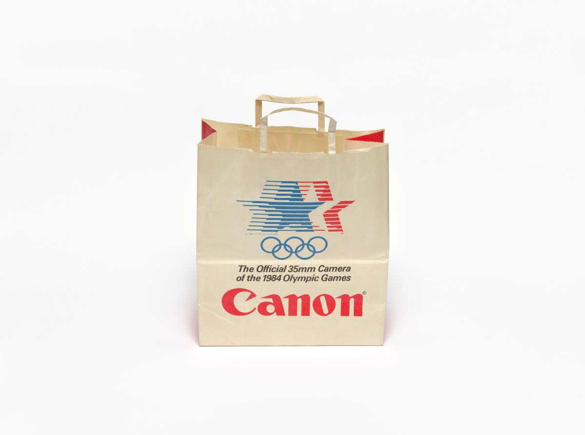 Los Angeles 1984, paper bag with the Games' emblem.