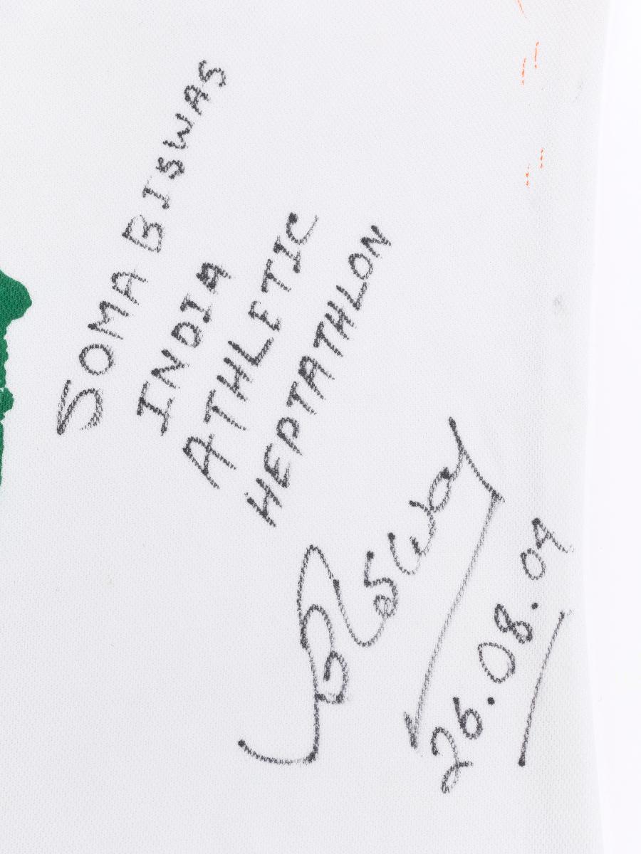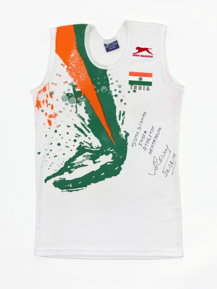 Athens 2004, suit worn by Soma BISWAS (IND), 24th place, heptathlon.