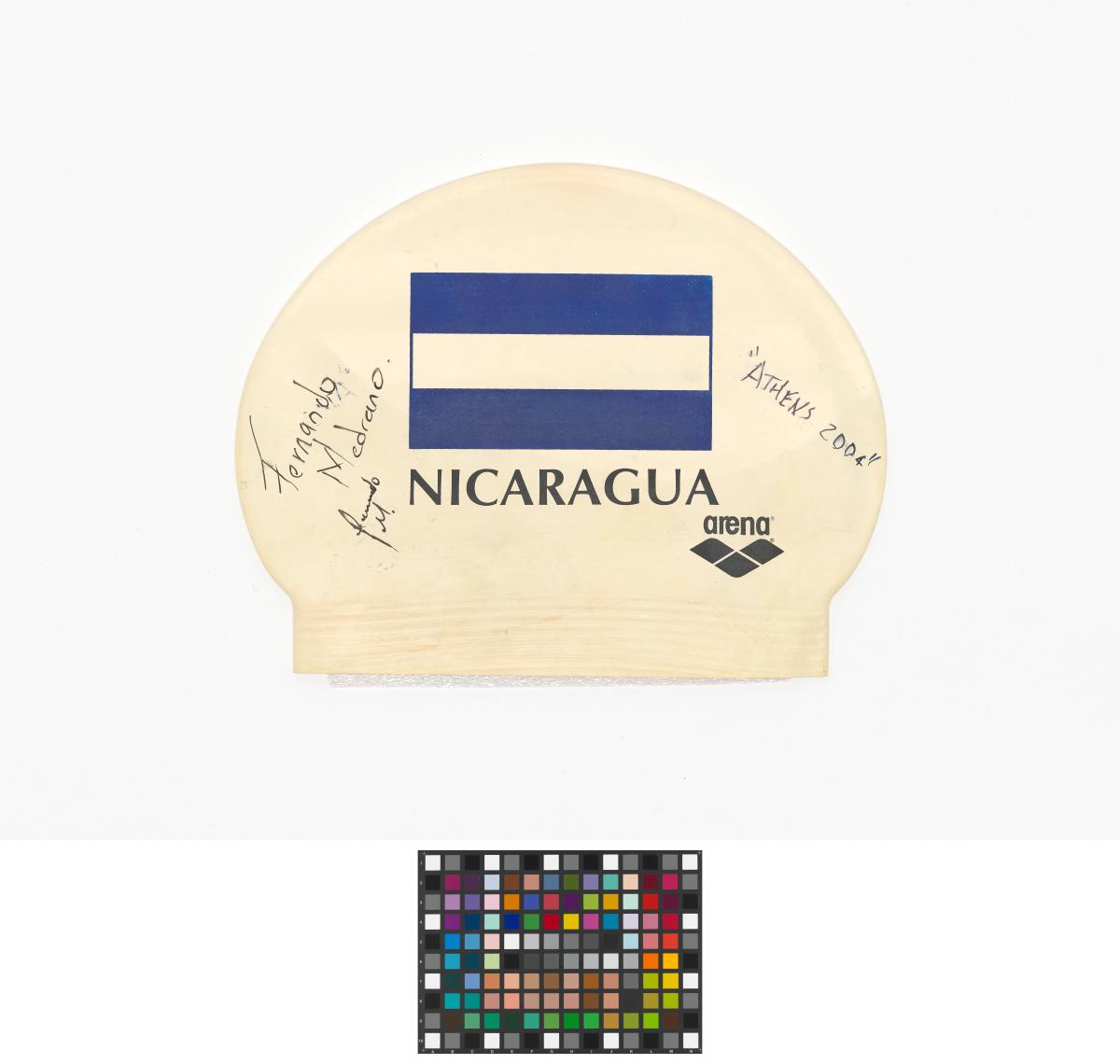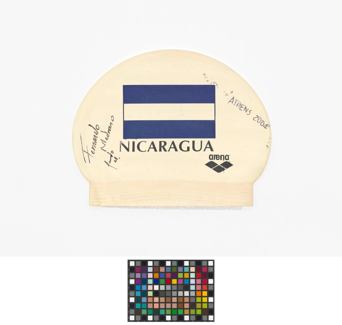 Athens 2004, swimming cap signed by Fernando Ernesto MEDRANO-MEDINA (NCA), 100m, butterfly.