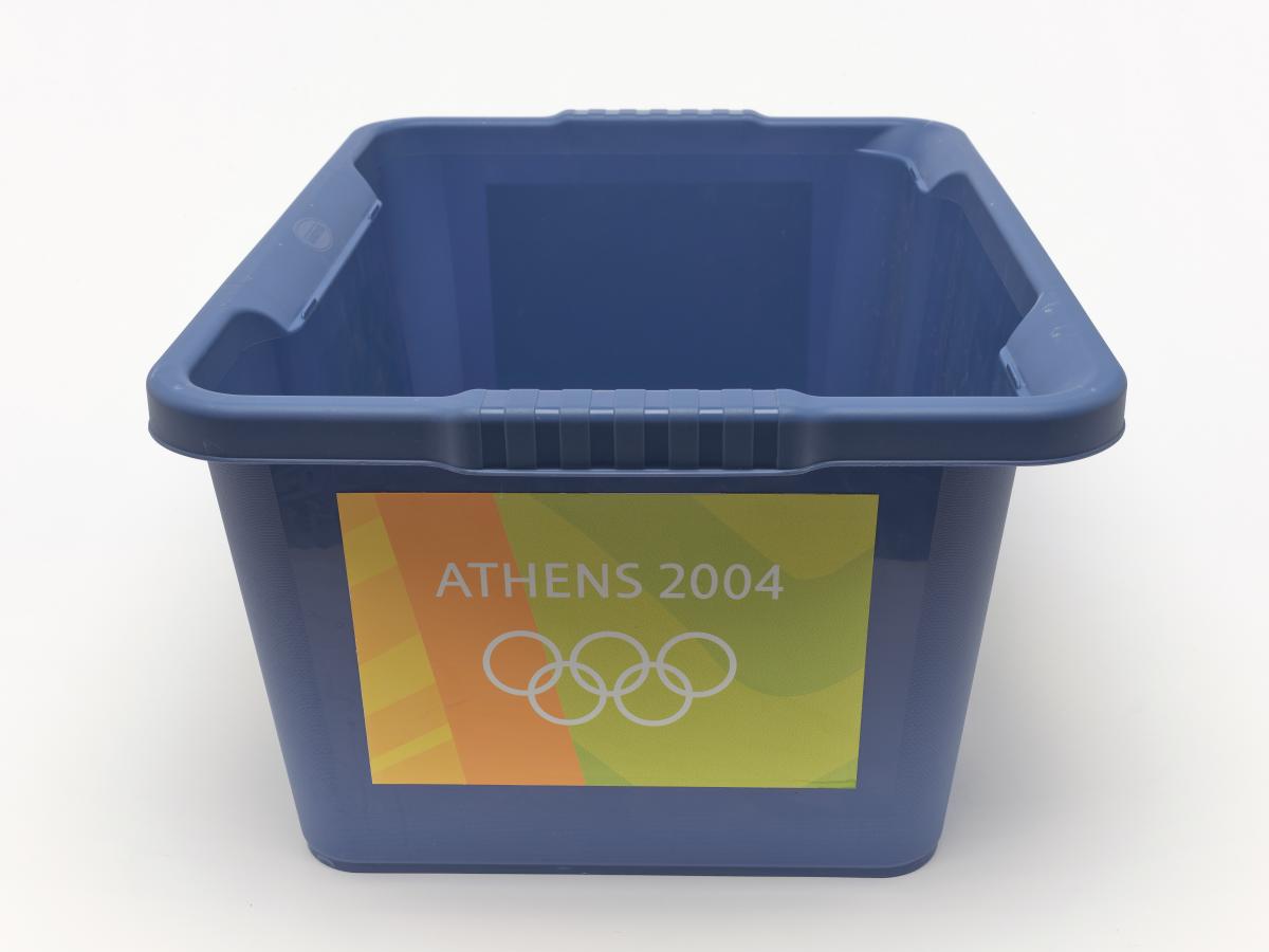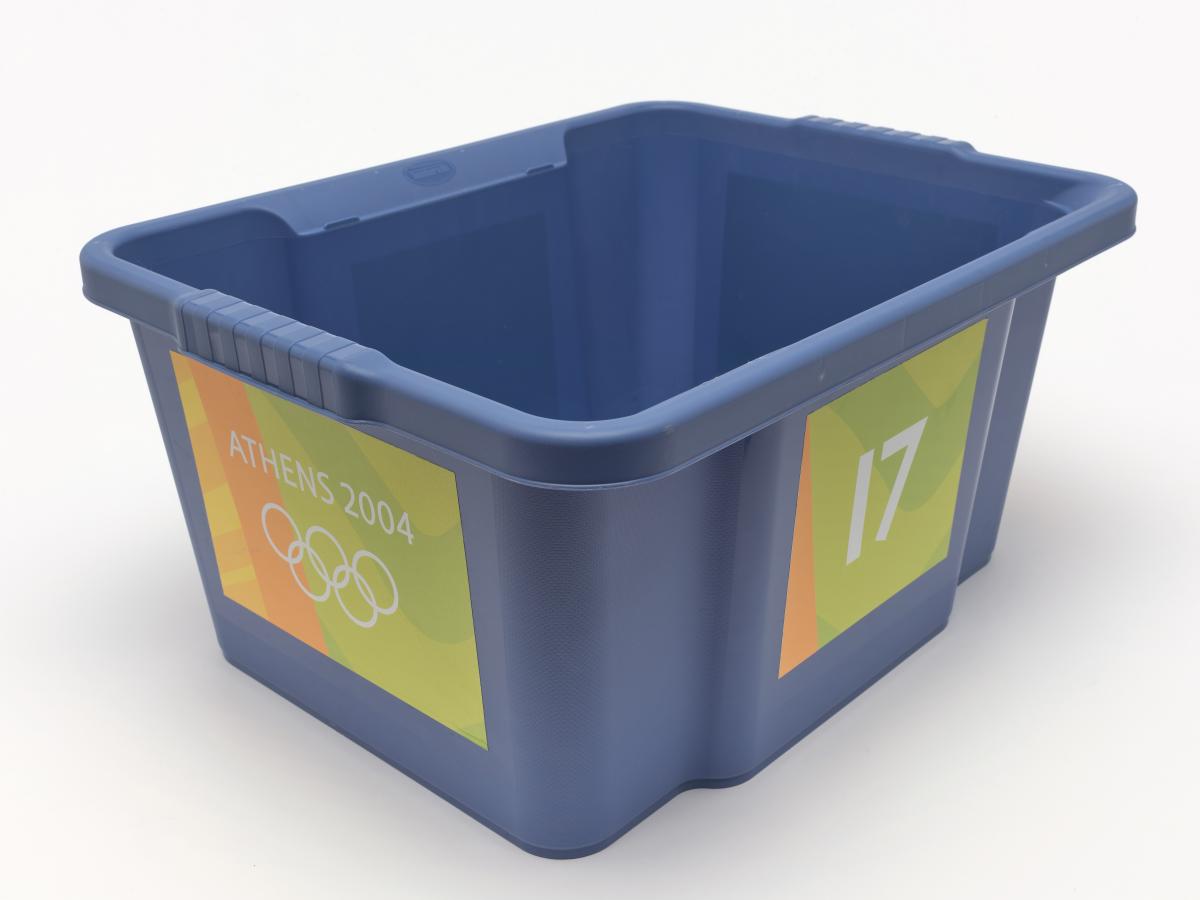 Athens 2004, plastic basket used to contain the athletes' clothes.