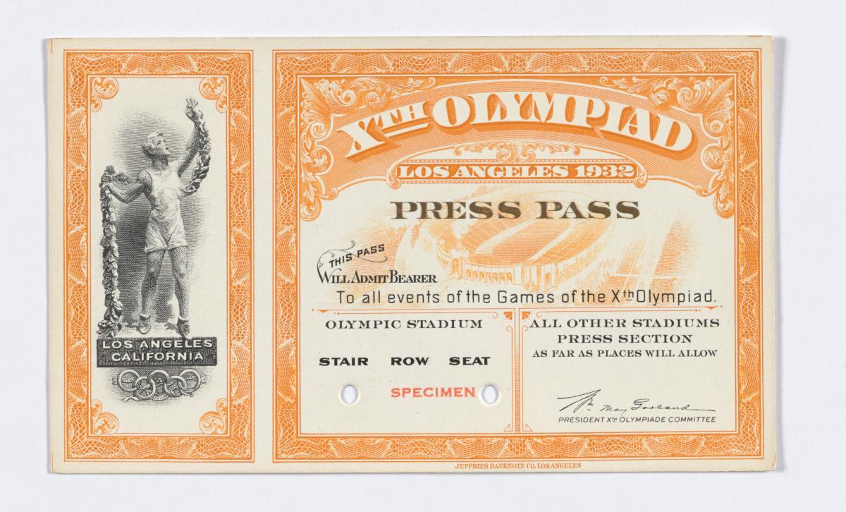 Los Angeles 1932, press pass.