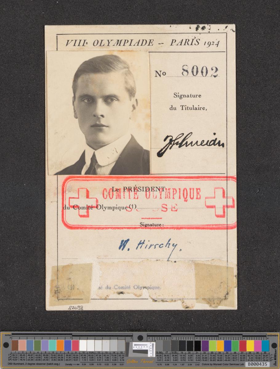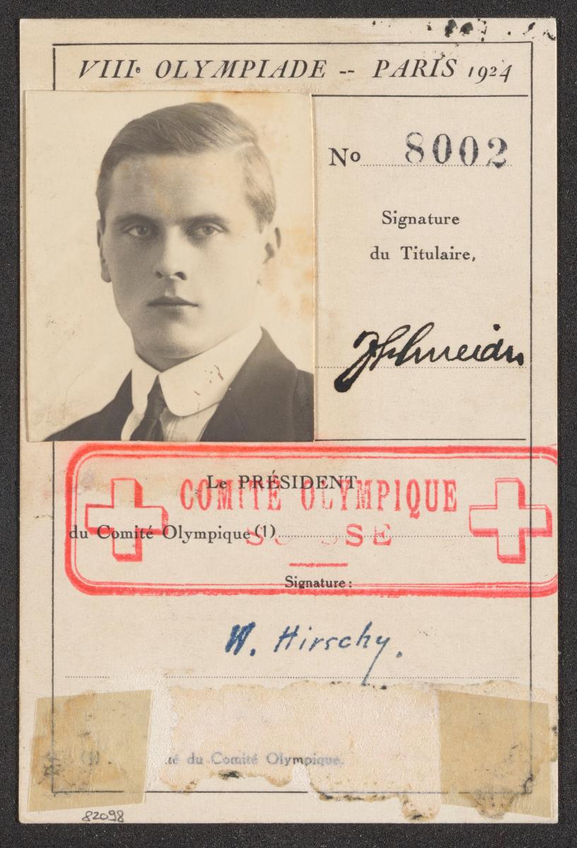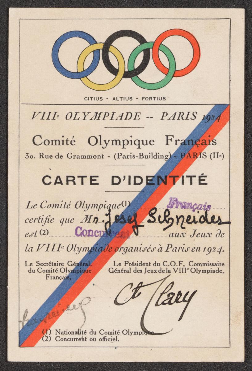 Paris 1924, identity card of Josef SCHNEIDER (SUI), rowing bronze medallist, single sculls.