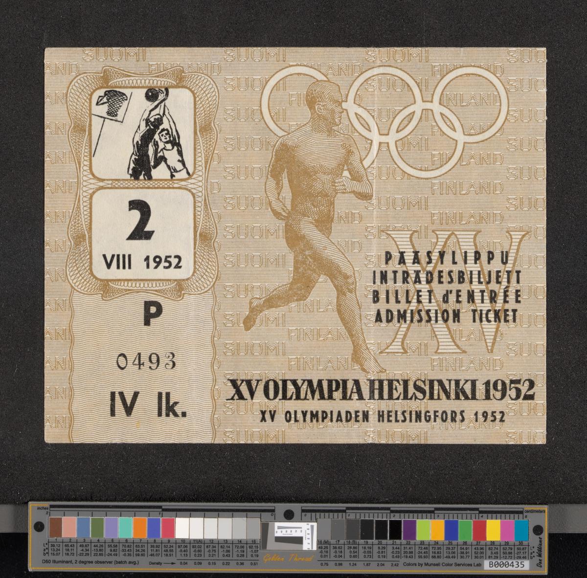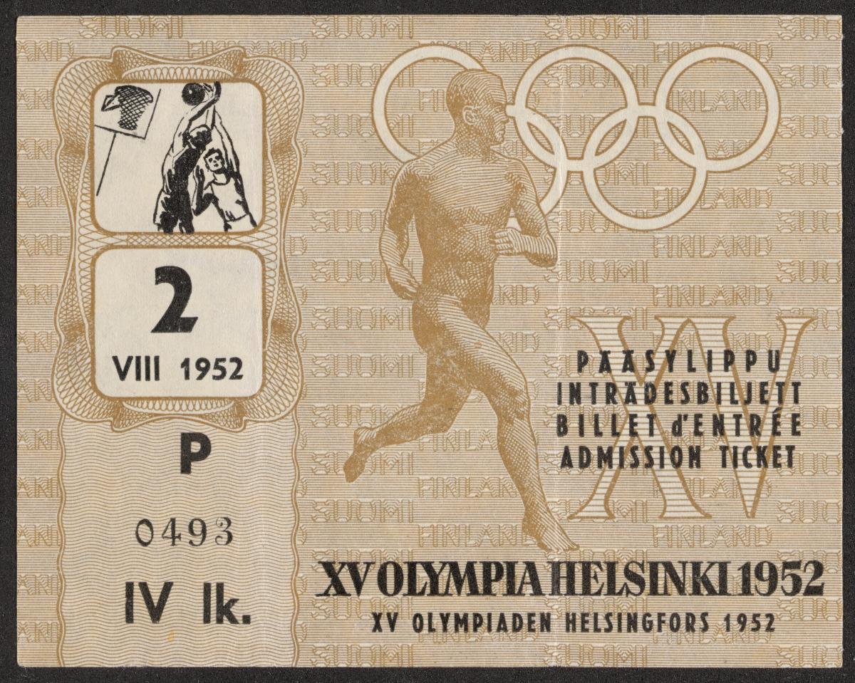 Helsinki 1952, admission ticket to basketball, August 2nd.