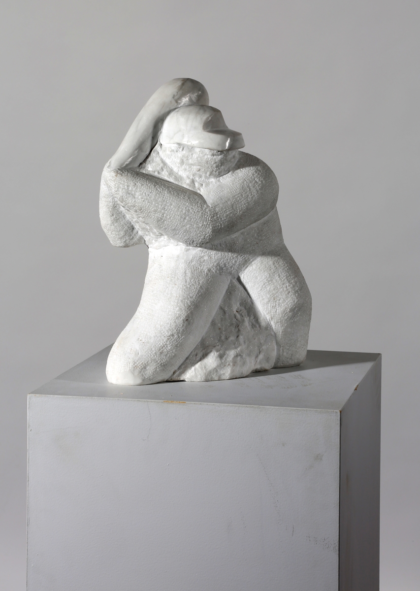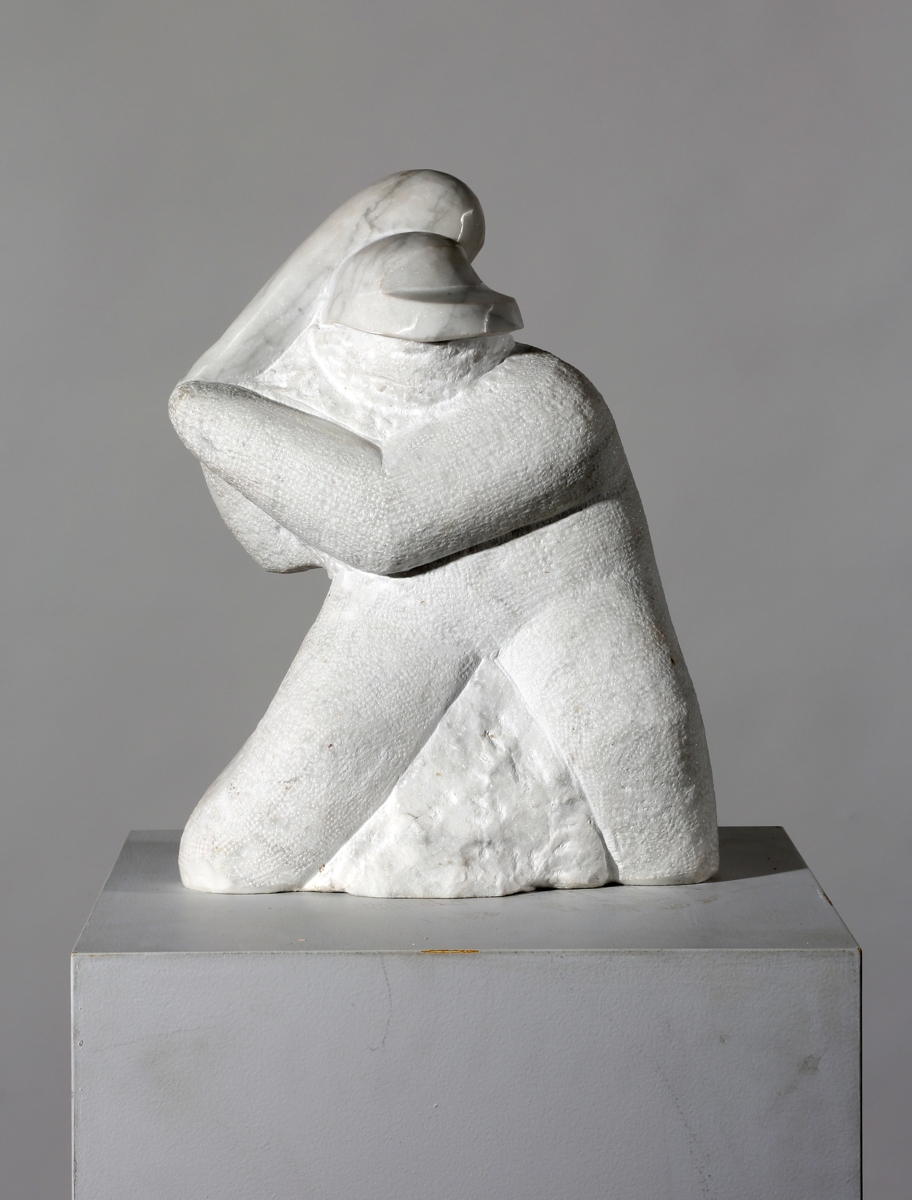Sculpture of a baseball player preparing himself to hit the ball. The marble has different degrees of polishing.