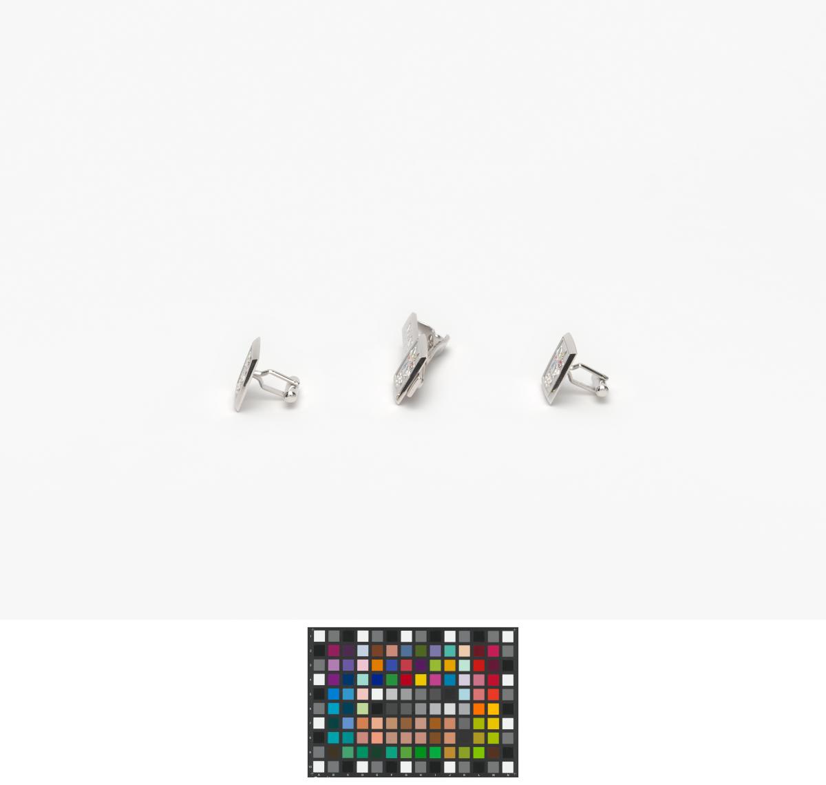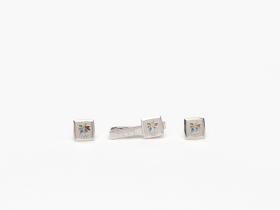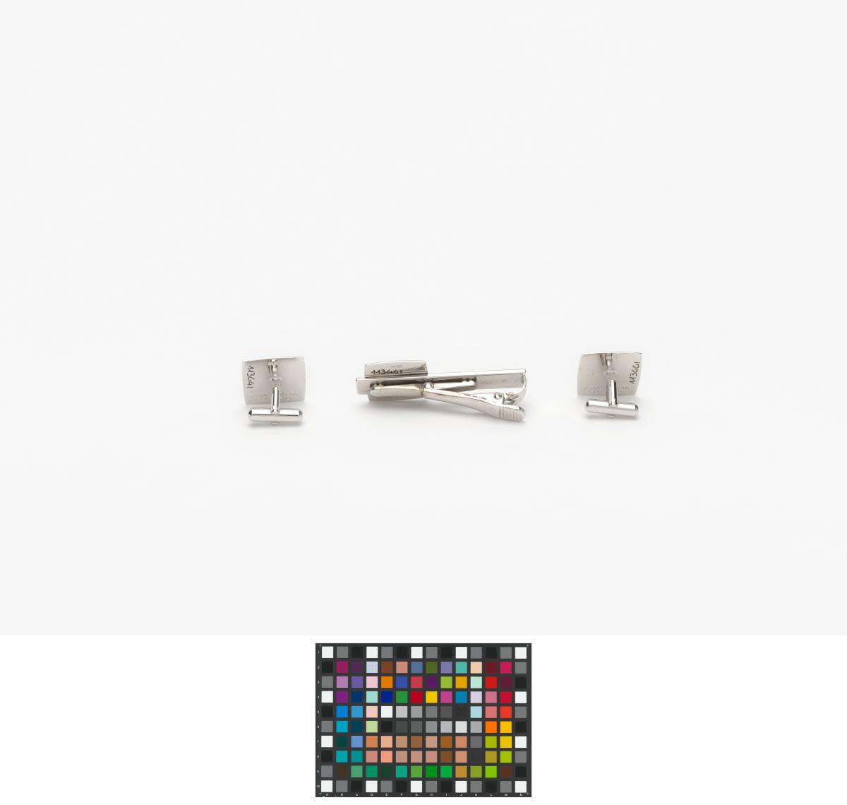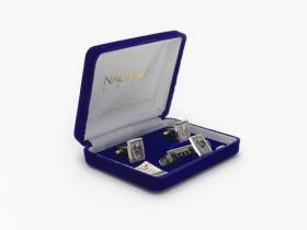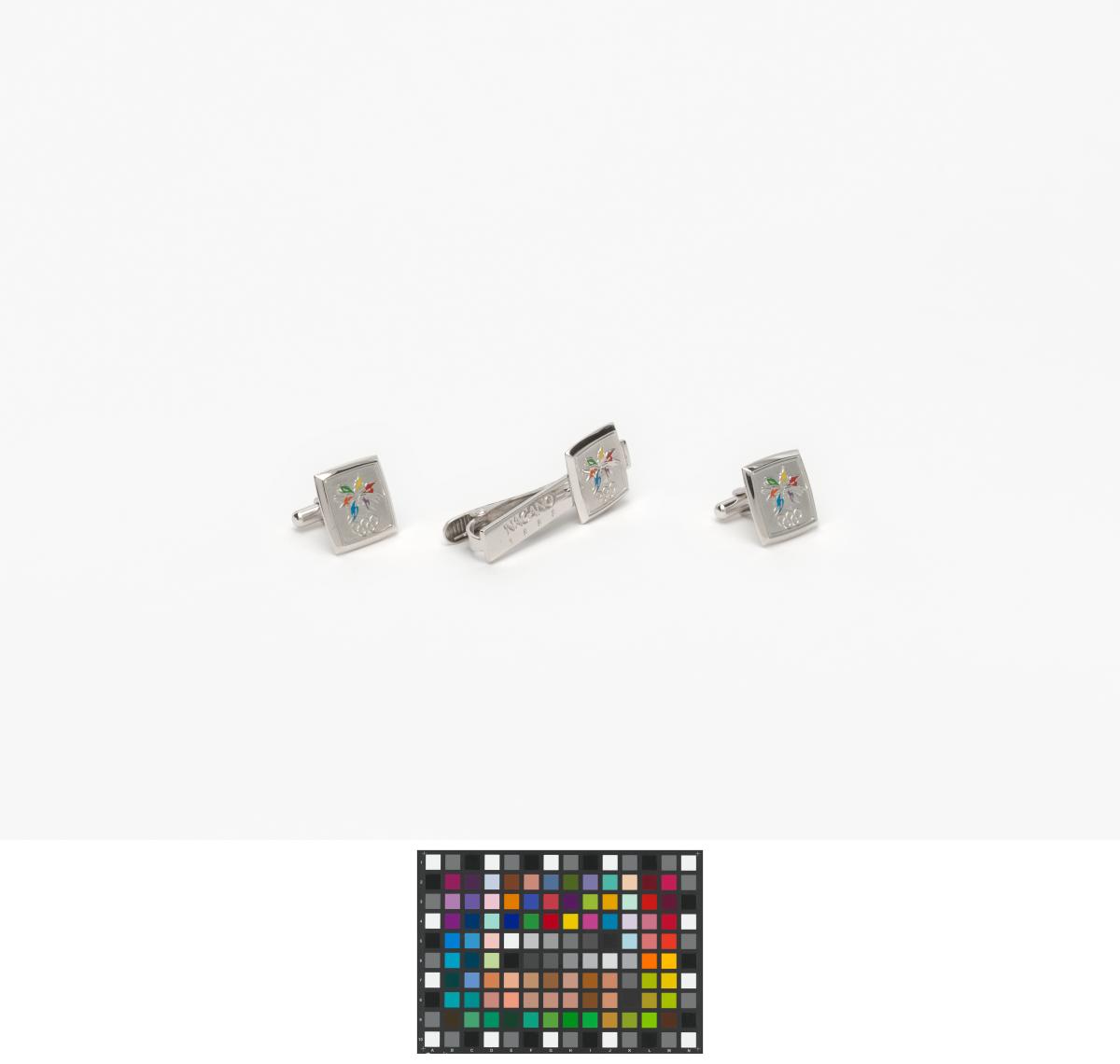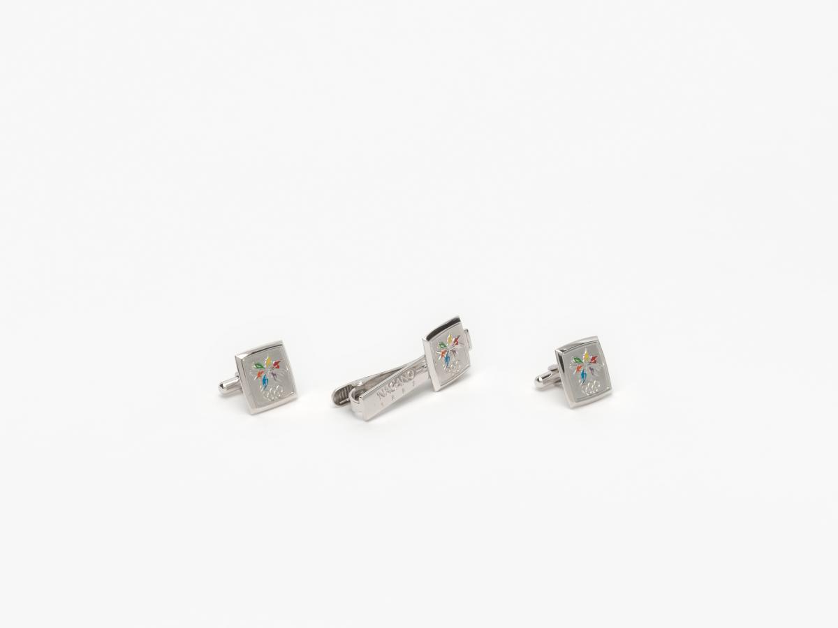 A tie bar and a pair of cufflinks with the emblem of the Games.