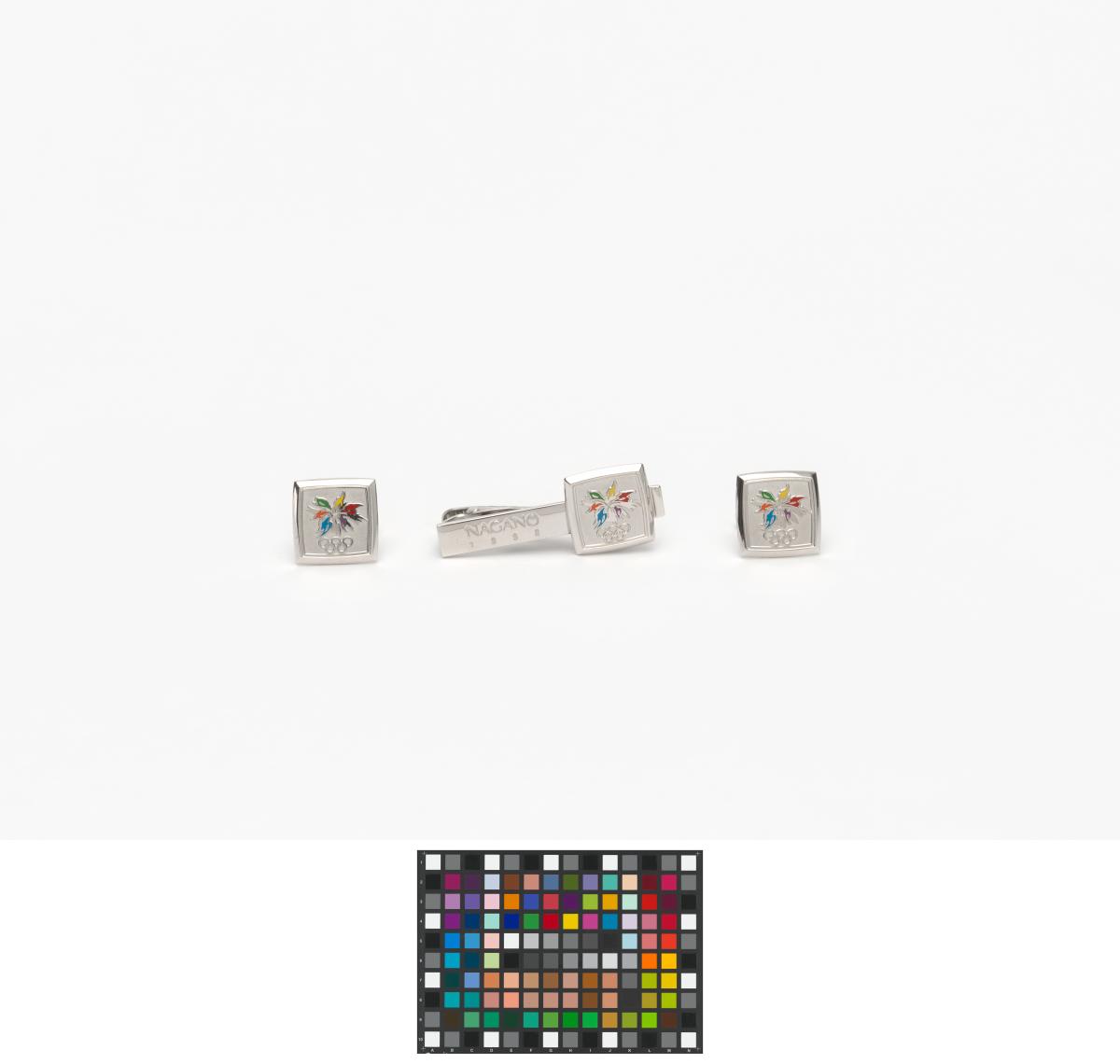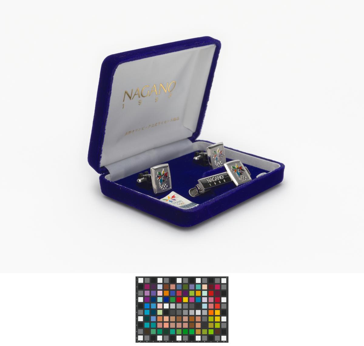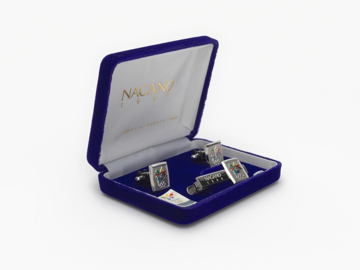 Nagano 1998, set comprising a tie bar and a pair of cufflinks with the emblem of the Games.