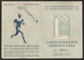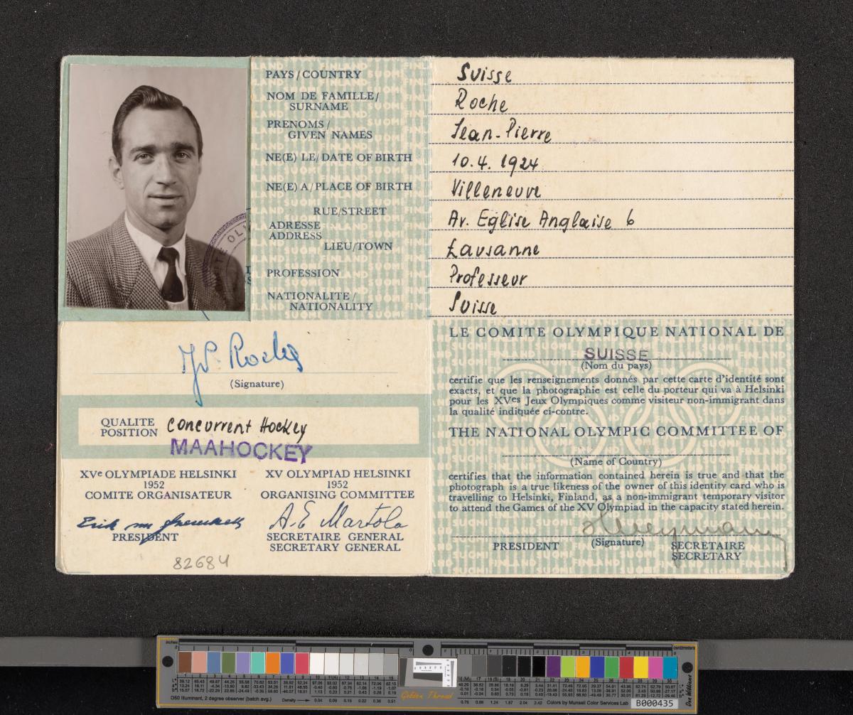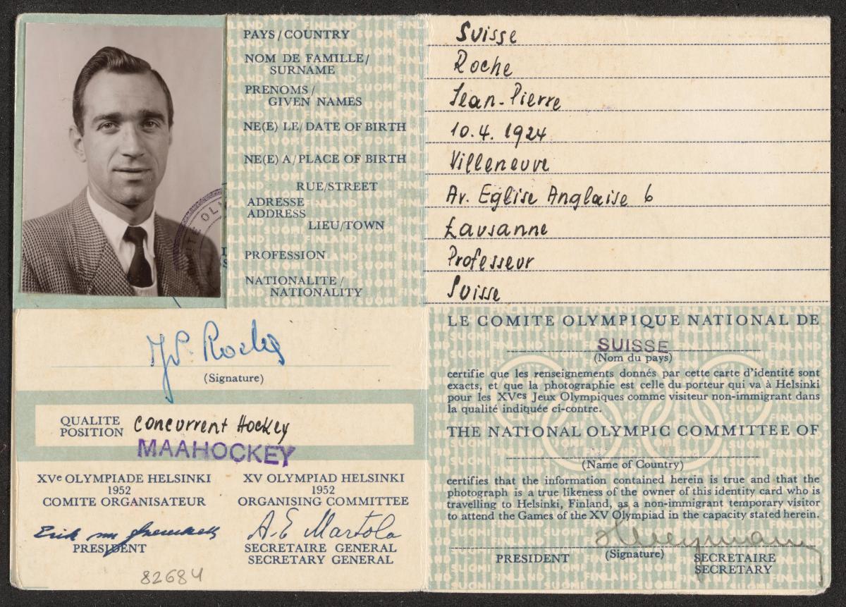 Helsinki 1952, identity card of Jean-Pierre ROCHE (SUI).