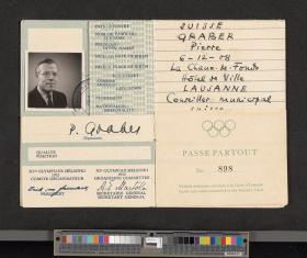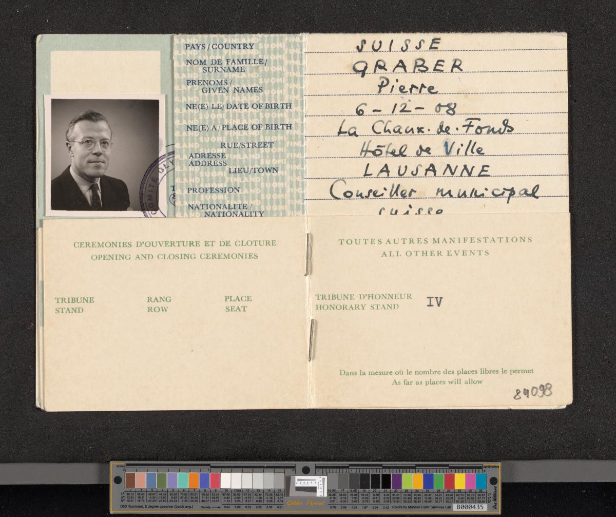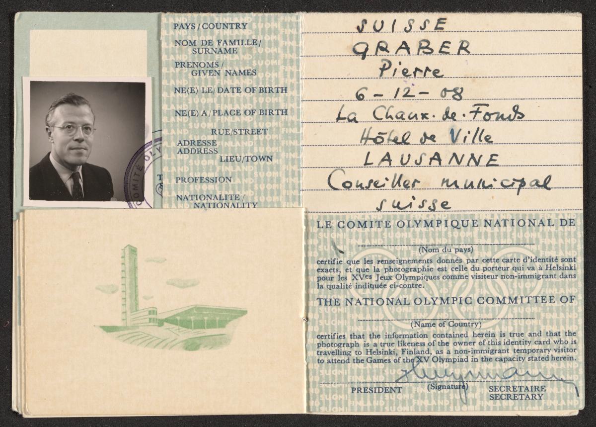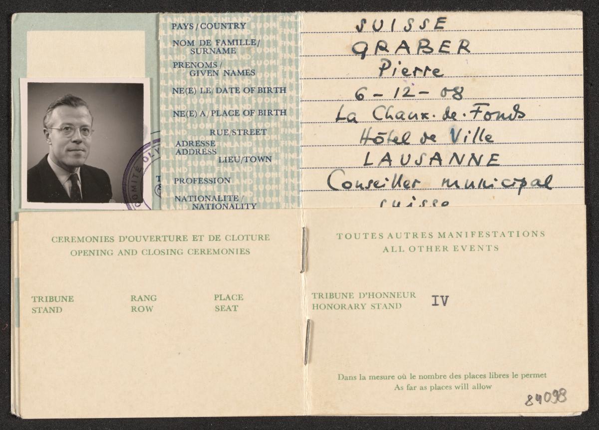 Helsinki 1952, identity card of Pierre GRABER (SUI).