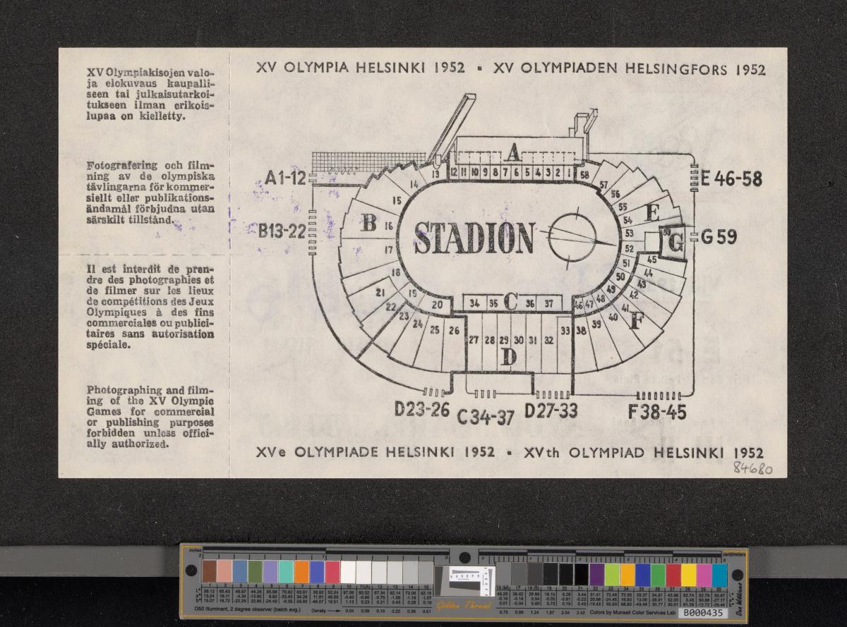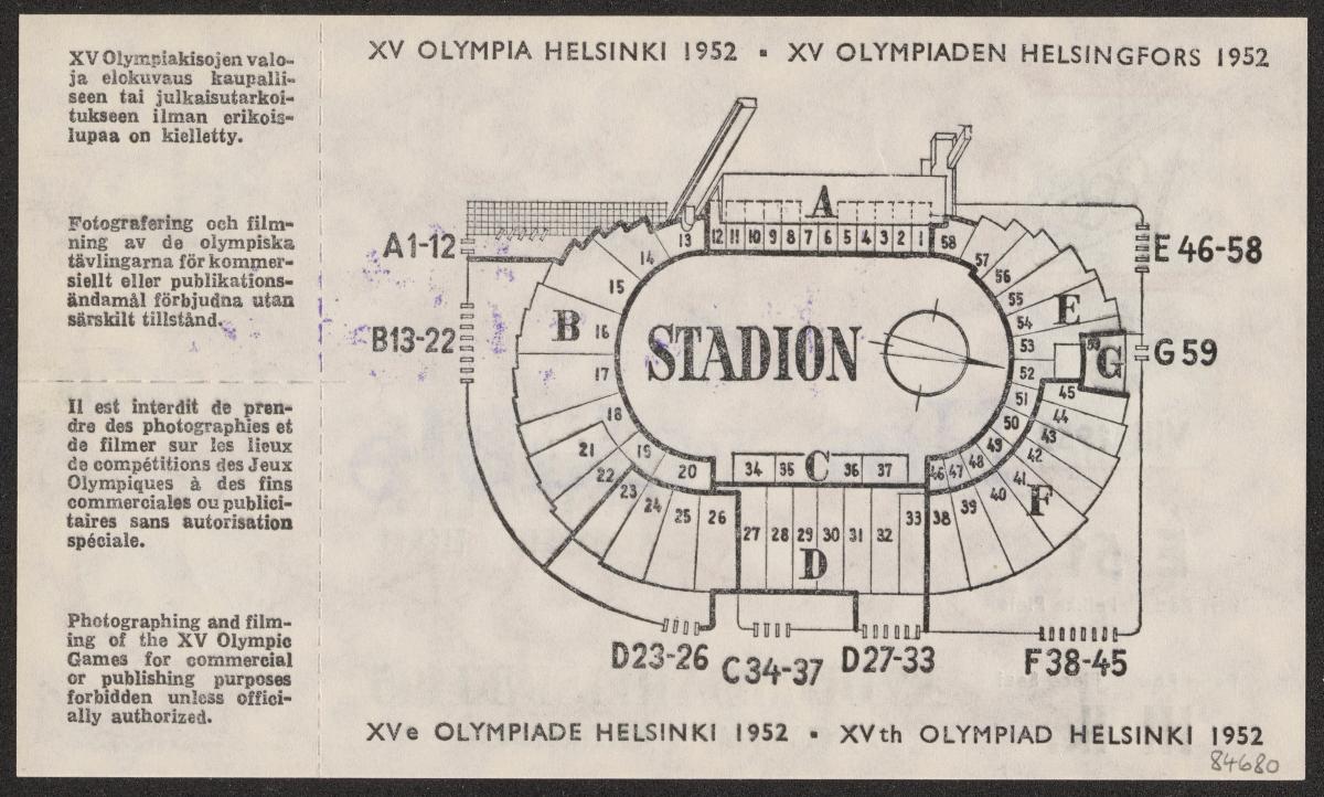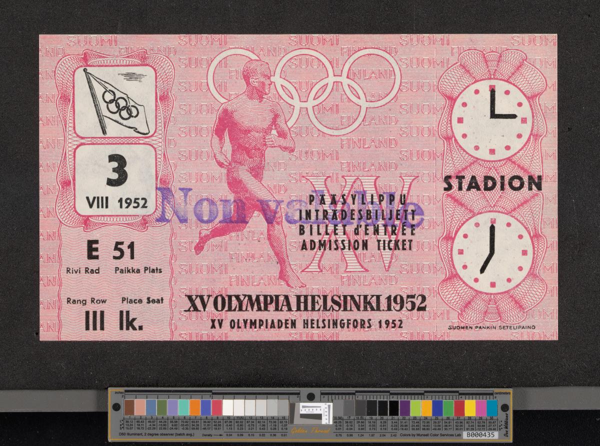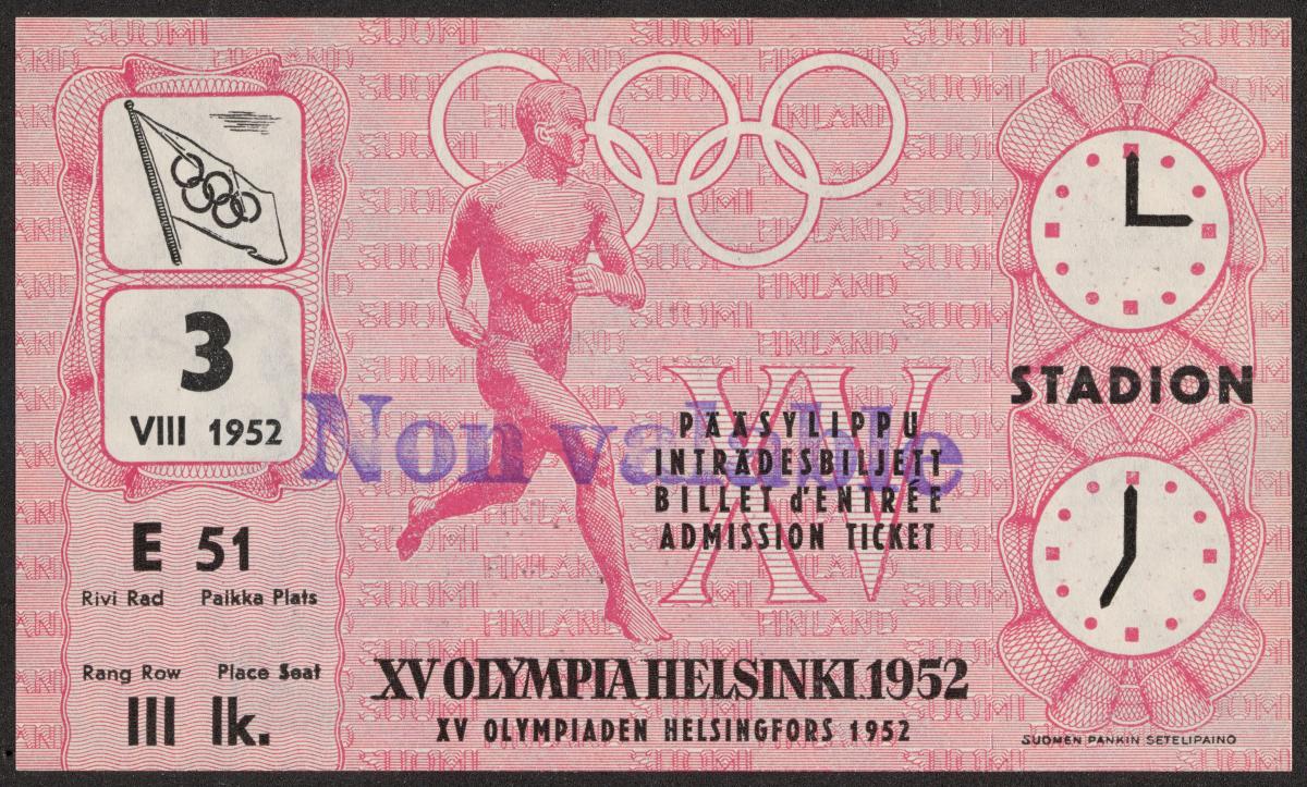 Helsinki 1952, admittance ticket for the closing ceremony, August 3rd.