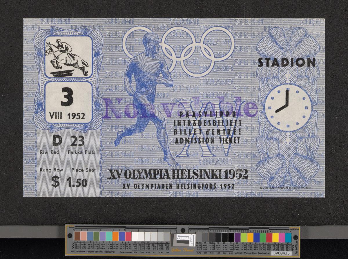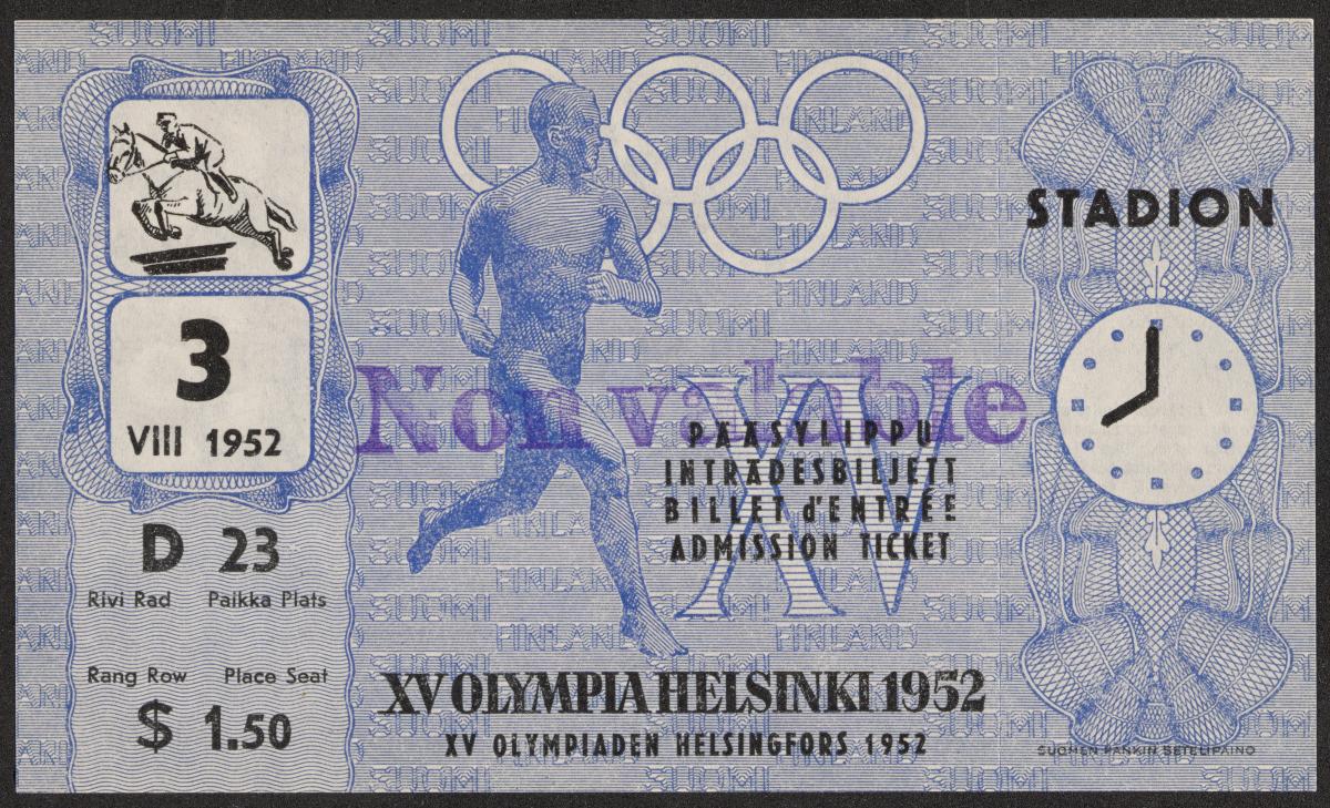 Helsinki 1952, admittance ticket for equestrian, August 3rd at 8:00.