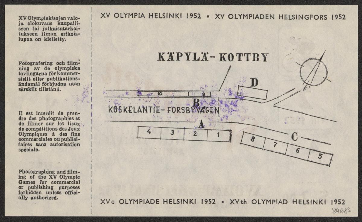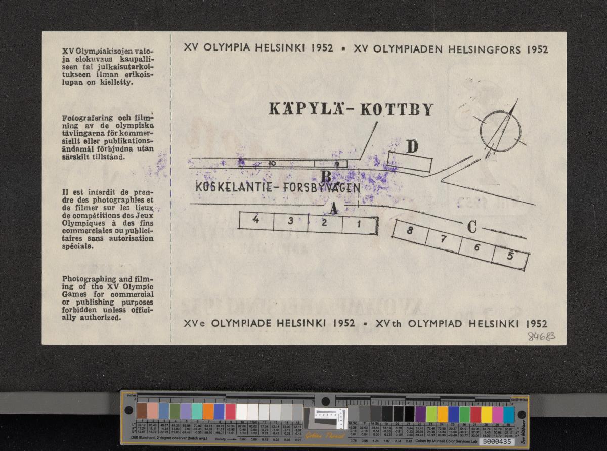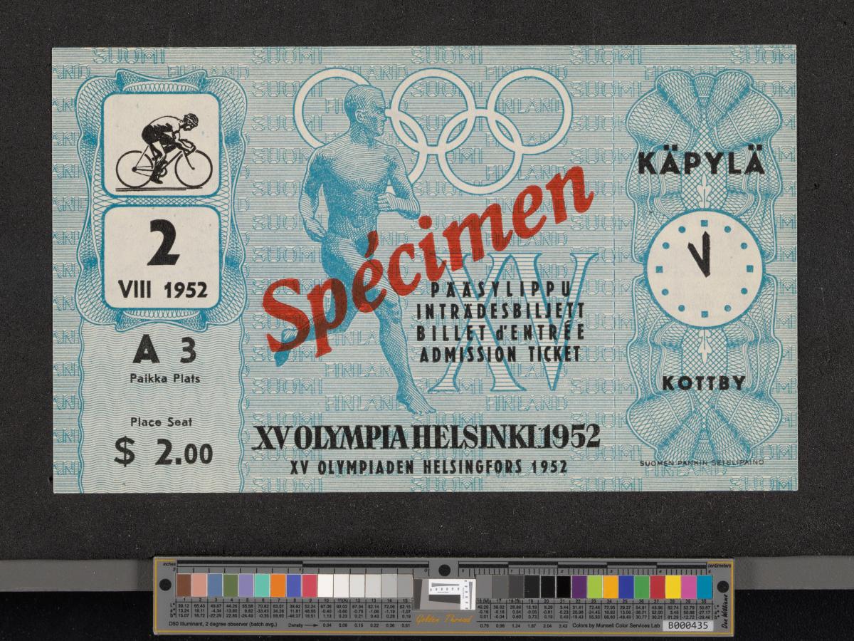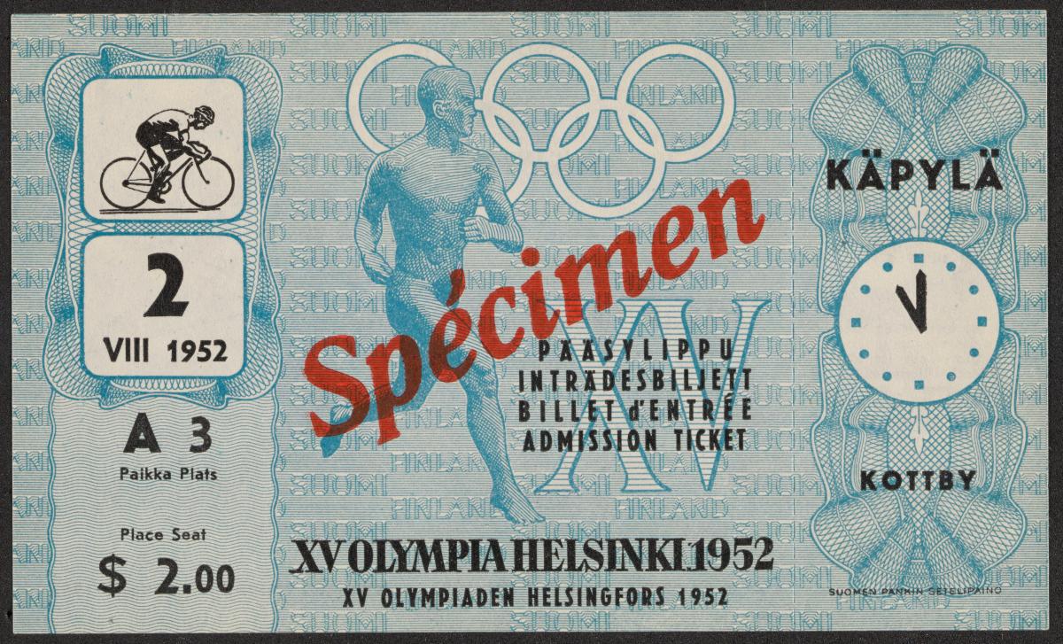 Helsinki 1952, admission ticket for cycling, August 2nd.