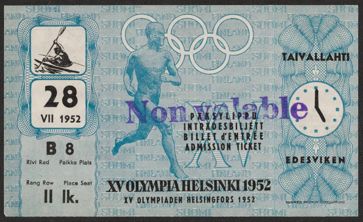 Helsinki 1952, admission ticket for canoe-kayak, July 28th.